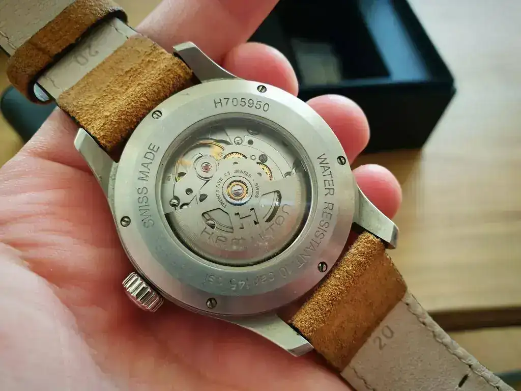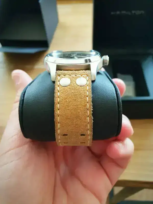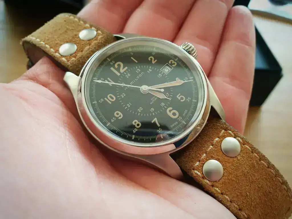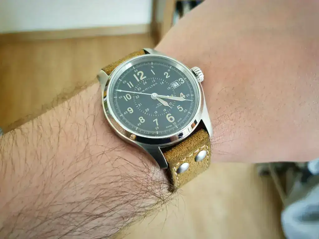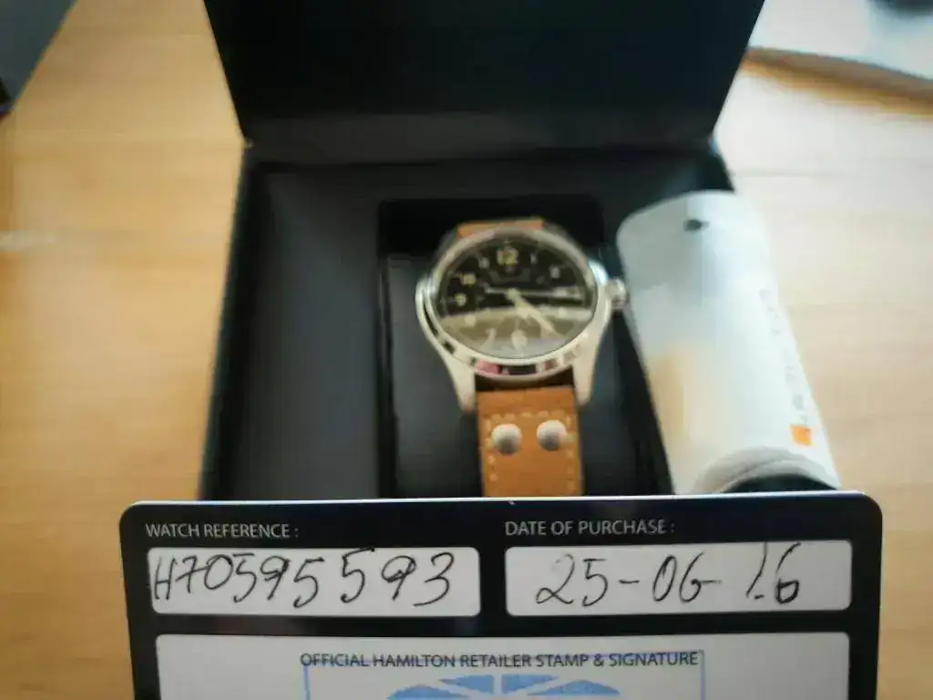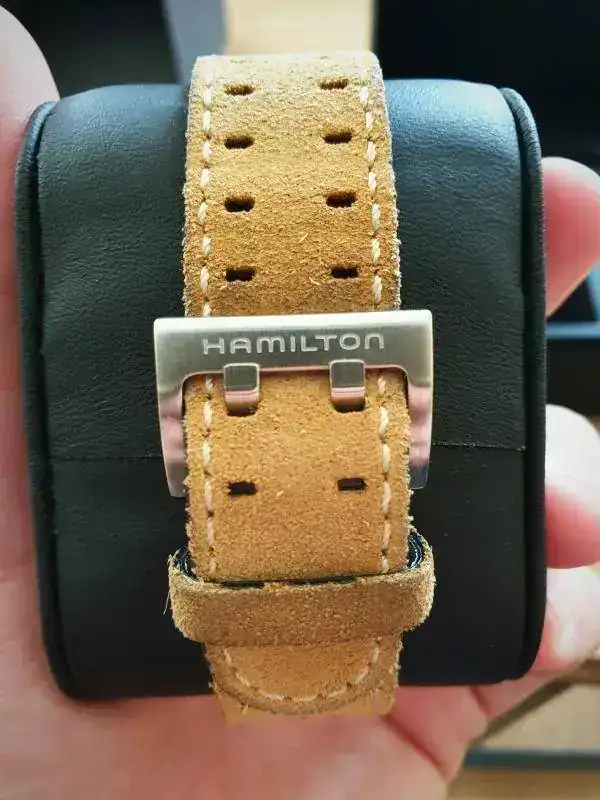 Vendo este bonito Hamilton Khaki, con una configuración de dial algo diferente a lo habitual e índices tostados, con unos 40mm que para mi muñeca de 17.5cm se hacen casi perfectos. El reloj es de 2016, y aunque ha sido usado, esta en muy buen estado (ver fotos). La correa, por el color y acabado, se ve algo más usada, pero es bastante nueva (se le sustituyo hace unos meses).