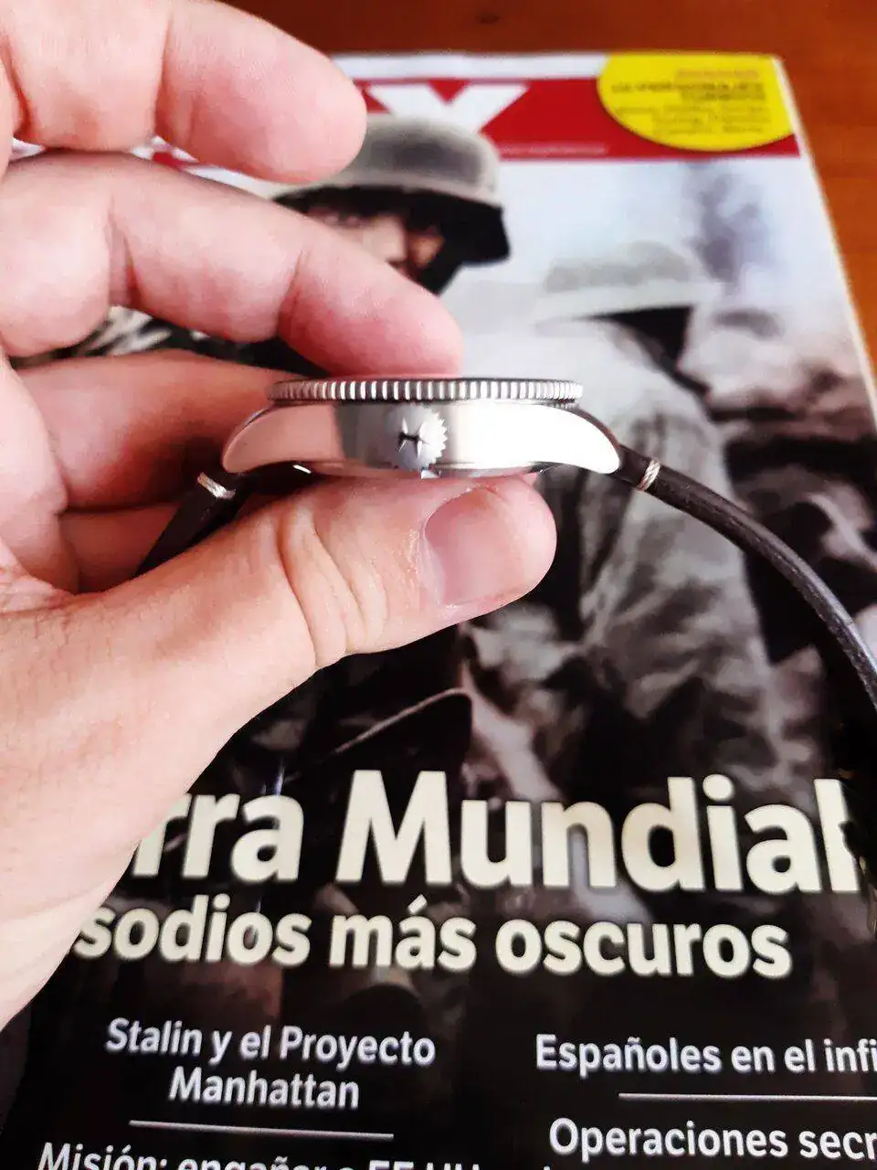 Estéticamente me gusta mucho y esa corona tipo cebolla de da mucho carácter. Además creo que es un reloj muy correable y con natos oscuras puede ser ideal para el verano.