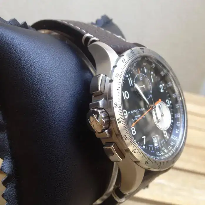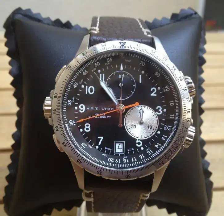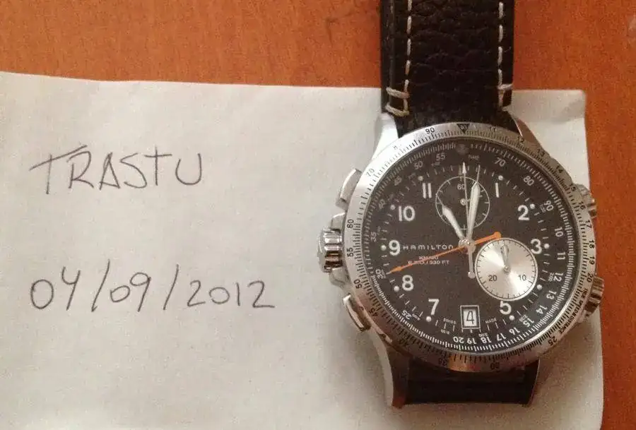 El reloj no tiene ni caja ni papeles, ya que la persona que me ha hecho el cambio lo había perdido todo en una mudanza. Hace unos 2meses le hizo cambio de pila y una pequeña revisión y el reloj estaba en perfectas condiciones de marcha. También en el momento de la revisión le cambió la correa ya que la original estaba un poco usada. Le puso una de piel marrón que como veis en las fotos le queda de perlas.