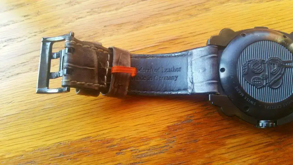 Cierre: Acero inoxidable pavonado PVD. Hebilla.