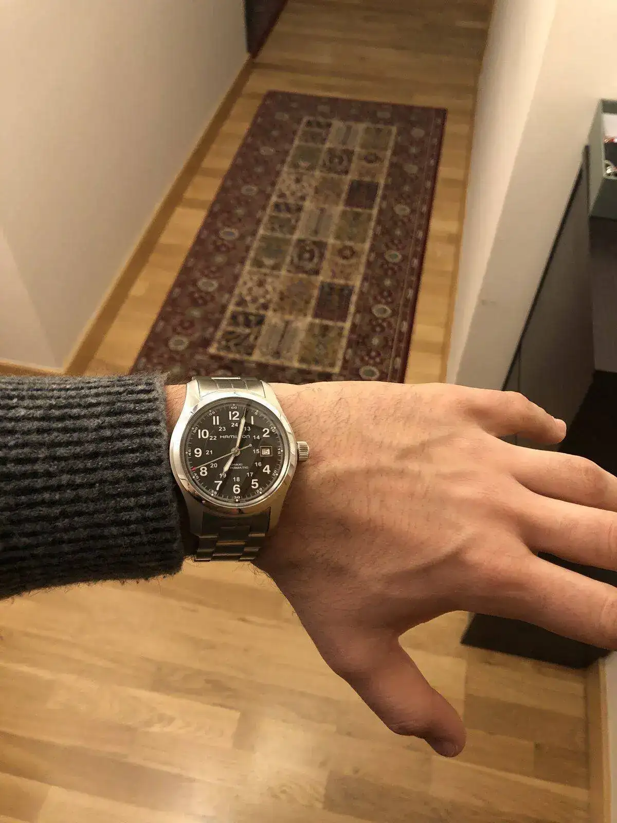 Me he probado la variante automática en 42 mm, el kahki king auto 42 mm y lo veo algo grande.