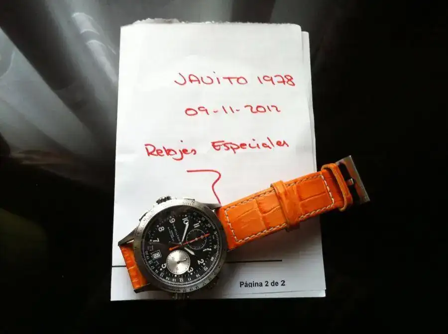 Va con su correa de piel naranja de hamilton. Estado diria al 95% . Puesto en casa por correos 24h previo ingreso en cuenta. Cualquier consulta y ofertas por privado.