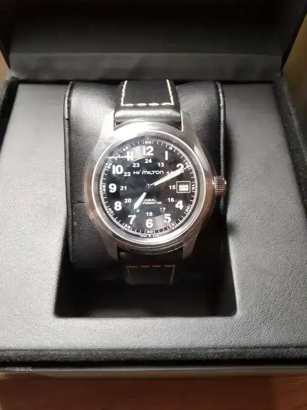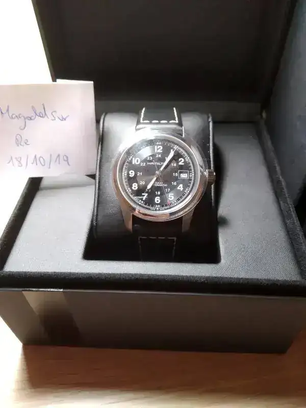Hola compañeros, saco a la venta el conocidísimo Hamilton khaki field automatico en 38 mm, está nuevo a estrenar, con todos sus plásticos puestos, delantero, trasero y correa, tiene de garantía 1 año y 5 meses por delante, el estado es impoluto 10 sobre 10 ya que no ha sido puesto ni una sola vez. Para este reloj no me interesa ningún cambio, ya que el dinero está invertido en otra pieza. Le pongo un precio de 385 euros envío certificado incluido.