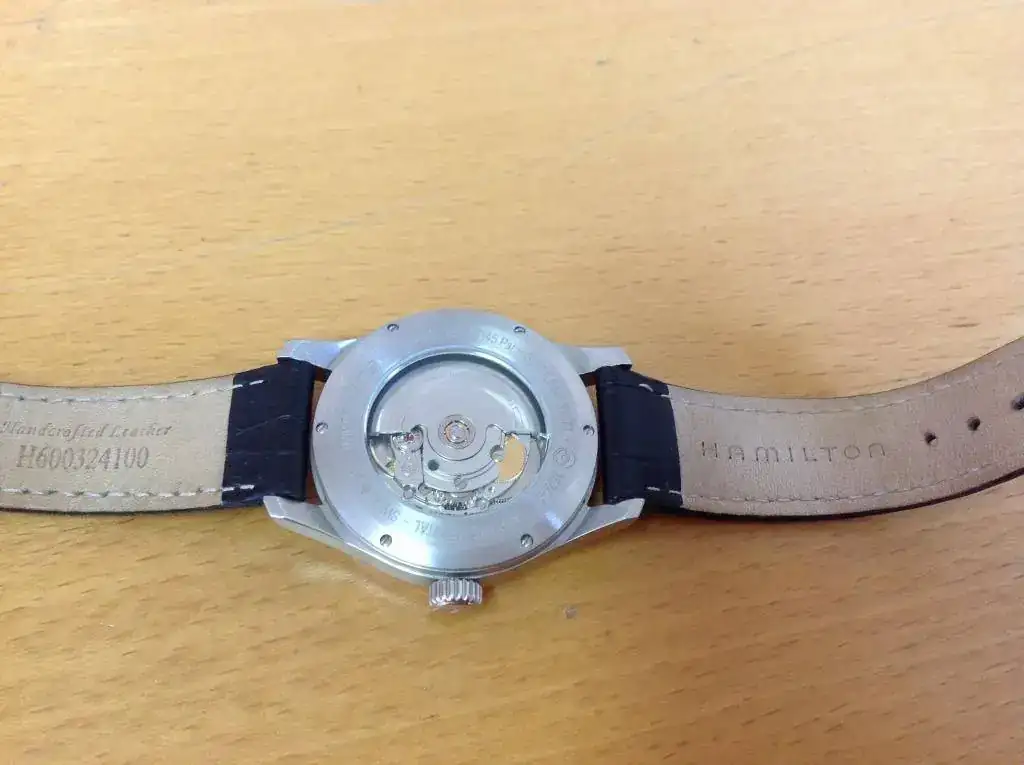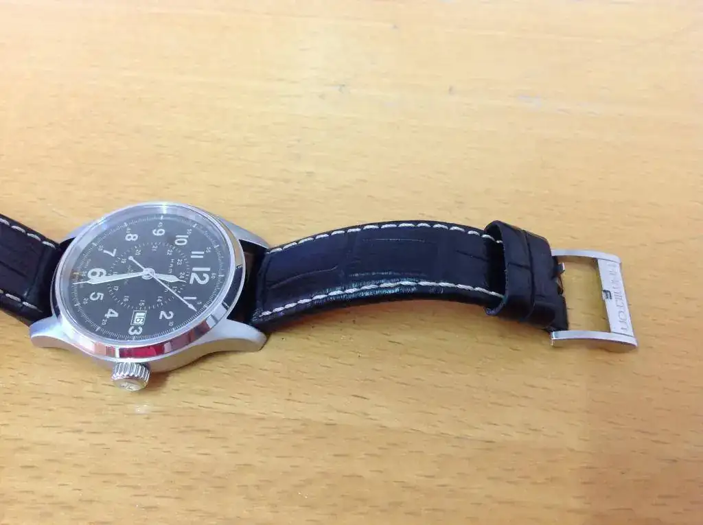 El estado es muy bueno, tanto estético como de marcha. Con agún pelillo si te empeñas en buscarlos y poco más. Correa Hamilton acabado cocodrilo con muuucha vida por delante y acompaño una nato negra y una correa de nailon de las de una pieza ( creo que les dicen RAF) de color beige.