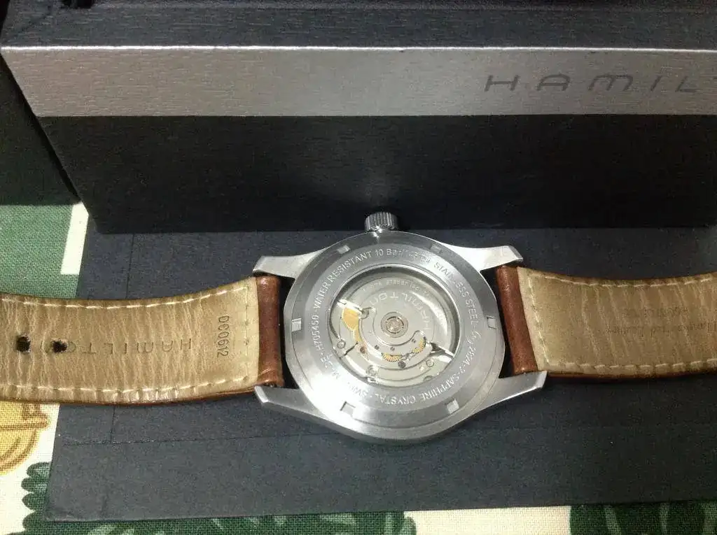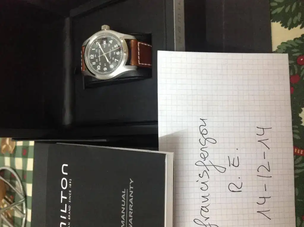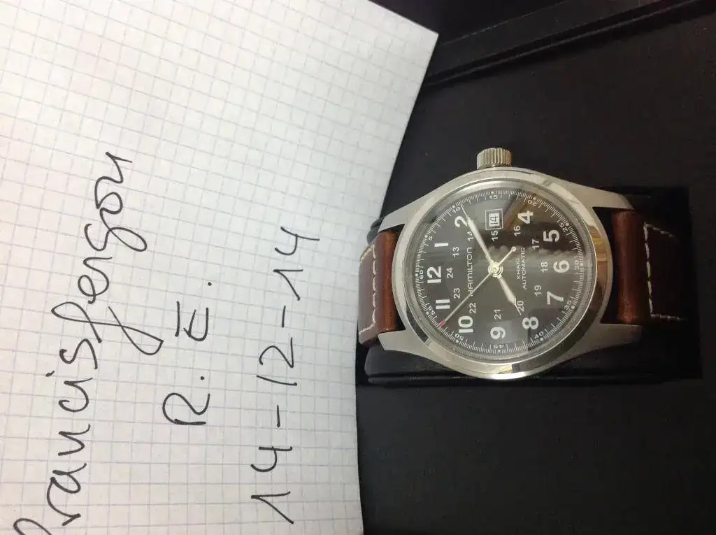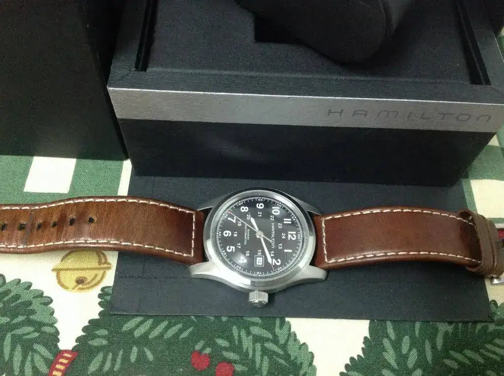 Pongo en venta este conocidísimo y valorado reloj. Un Hamilton Khaki Field de 42 mm, esfera negra, correa original con muchísima vida por delante (con un agujero extra, muy bien hecho por el forero que me lo vendió. Lo bien que está se ve en una de las fotos hecha a idea para eso).