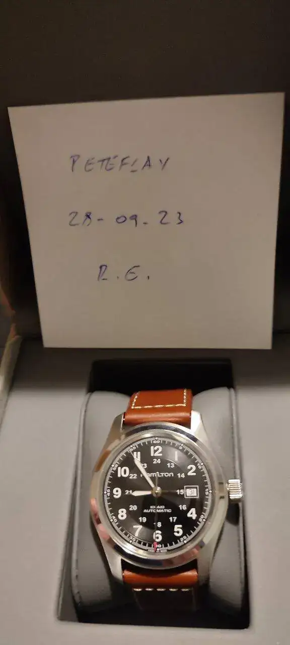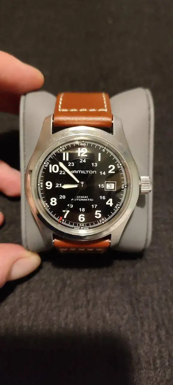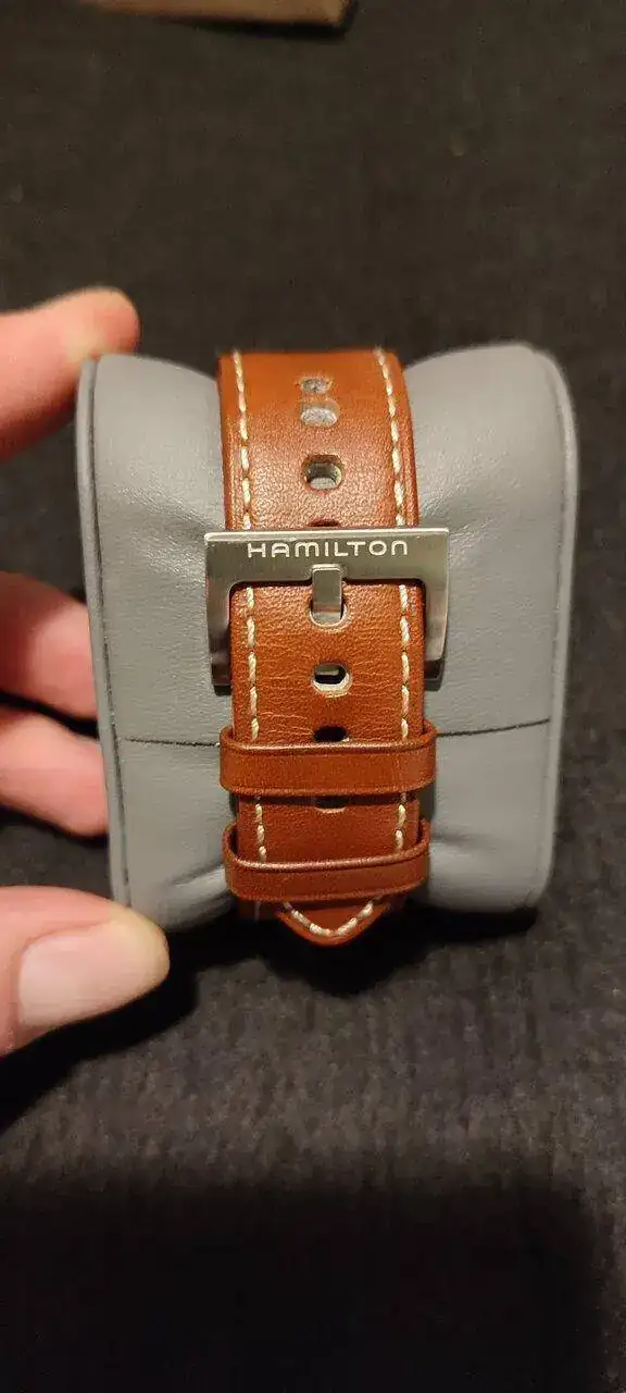 Pongo a la venta este clásico Hamilton Khaki Field de 42mm, ya que no lo estoy usando todo lo que se merece. El reloj está impoluto, ya que apenas lo he usado. Lo compré nuevo en un DO, en marzo de 2021, con lo que la garantía está vencida, pero funciona estupendamente. Lo único es que le hice un agujero extra a la correa original, pero no me la he llegado a poner nunca (lo tenía montado con otra correa).