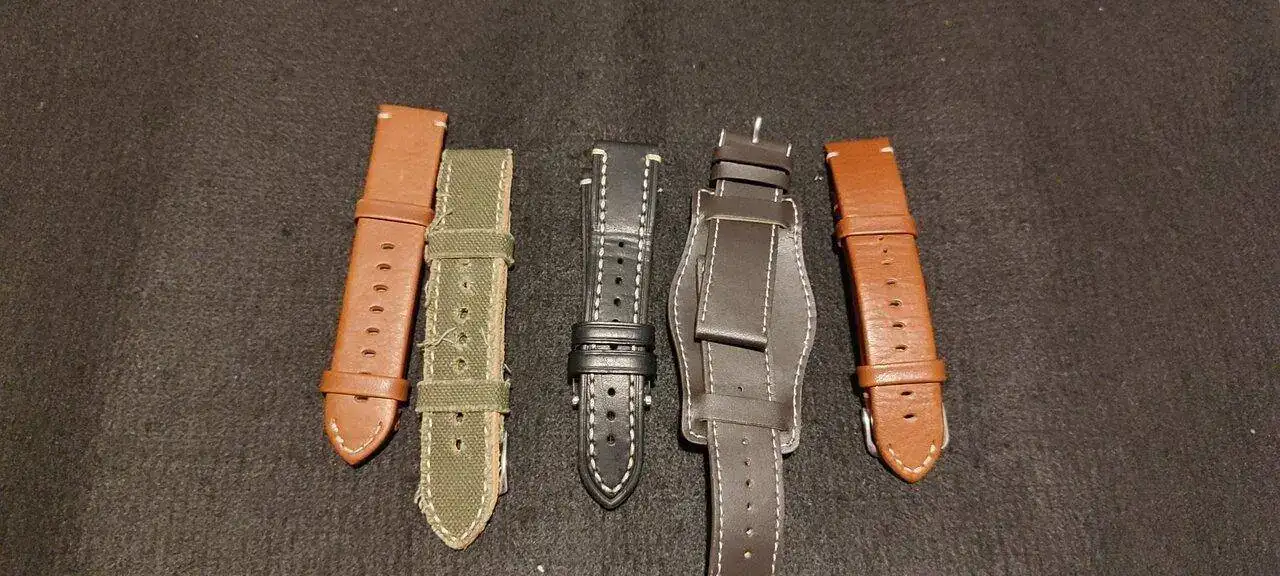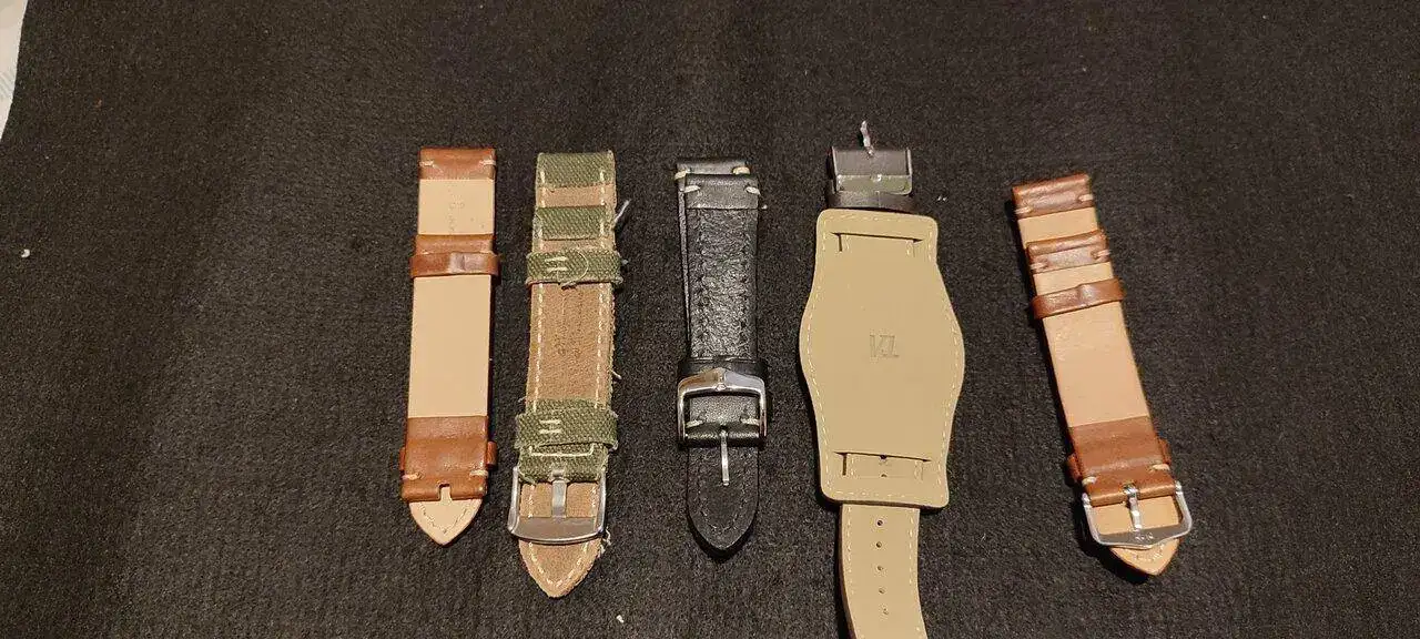 Regalo un lote de correas que también están a estrenar y que compré para este reloj: 2 Hirsch Ranger marrones (una sin hebilla), 1 Hirsch Liberty negra, 1 de piel y tela verde y 1 bund genérica (malilla pero da el pego). Puedo adjuntar también alguna nato negra y/o verde que tengo por ahí si alguien lo prefiere.