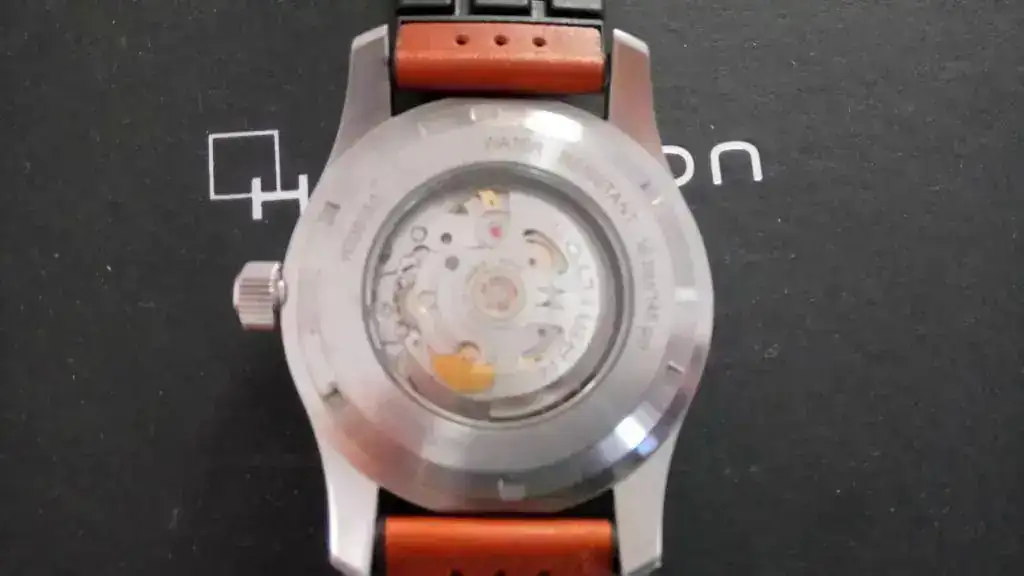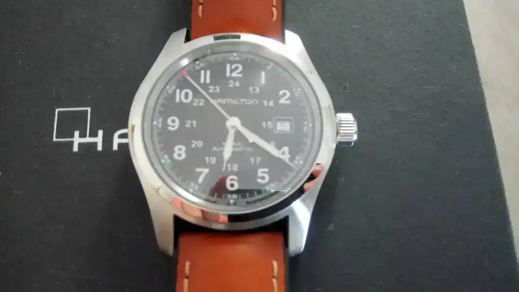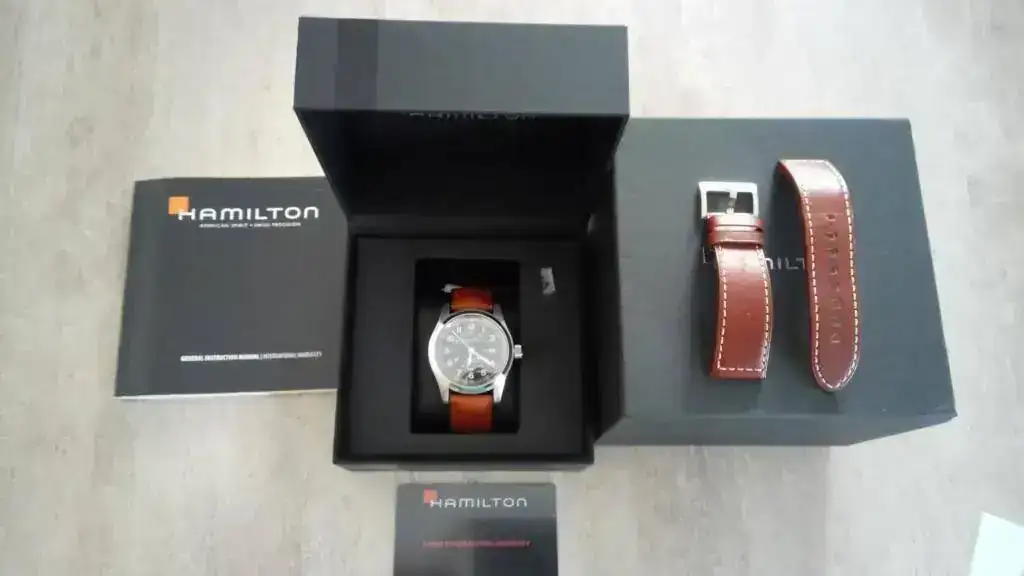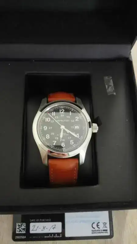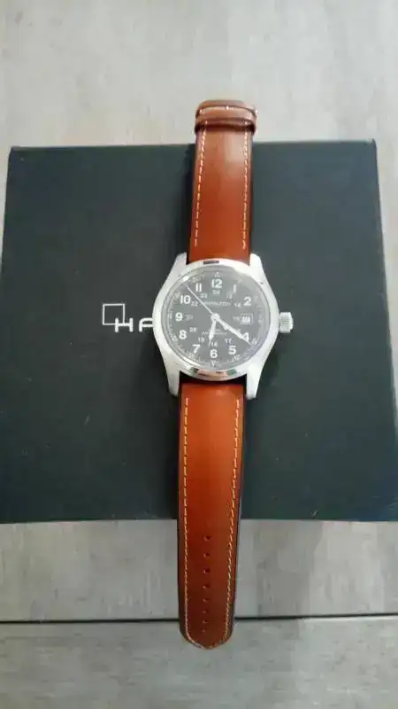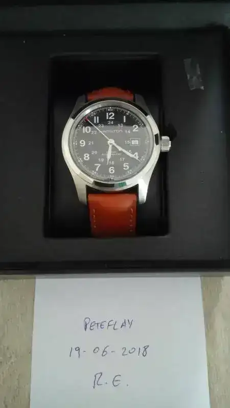 Por falta de uso, porque soy más de divers, saco a la venta este archiconocido Hamilton Khaki Field de 42mm. El reloj proviene de un compañero al que se lo compré hace unos meses, adquirido en CO en agosto de 2017, por lo que aún le queda garantía. Está en muy buen estado, ya que yo casi no lo he usado, y el dueño anterior lo mismo. Lo único que tiene son algunas marcas de uso en el bisel pulido, pero nada visible a simple vista, y que fácilmente se puede eliminar con un poco de Cape-Cod. Decir que funciona perfectamente, está en unos +5s/día, y monta el calibre H10, que viene a ser el Powermatic de Hamilton, con 80 horas de reserva y que funciona a 21.600 alternancias. Remarcar que, mientras Certina y Tissot ,montan este movimiento con piezas de plástico, Hamilton y Mido lo montan con todas las piezas metálicas.