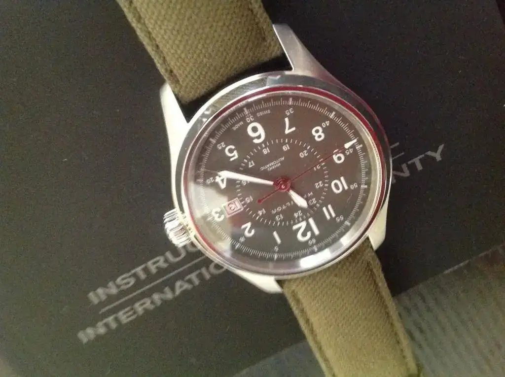 Lo dicho amigos, saco este casi recién llegado porque no es mi estilo de reloj. Se trata de la edición green de khaki field con su nueva maquinaria con mayor reserva de marcha. Dial verde, zafiro, bisel todo de reestreno pues tiene menos de un mes y apenas dos puestas. Completo de set y casi toda su garantía por delante. Espero que os guste. Os dejo ficha y fotos.