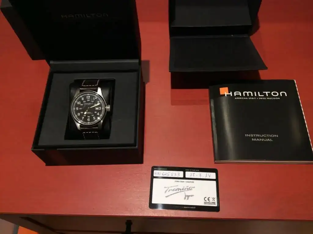 Bueno,pues como algunos tienen que salir para que otros entren,vendo mi Hamilton khaki de 44mm.Esta en perfecto estado,muy cuidado,comprado por mí en 2014 en Joyeria,lo he usado muy de vez en cuando,nunca ha dado ningún problema,va perfecto de marcha y no tiene ninguna marca que reseñar,de todas formas he procurado que se vea todo en las fotos!