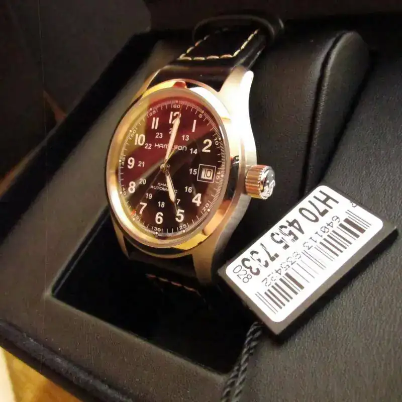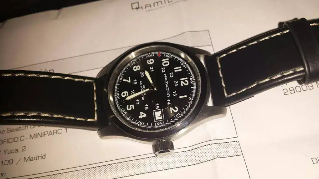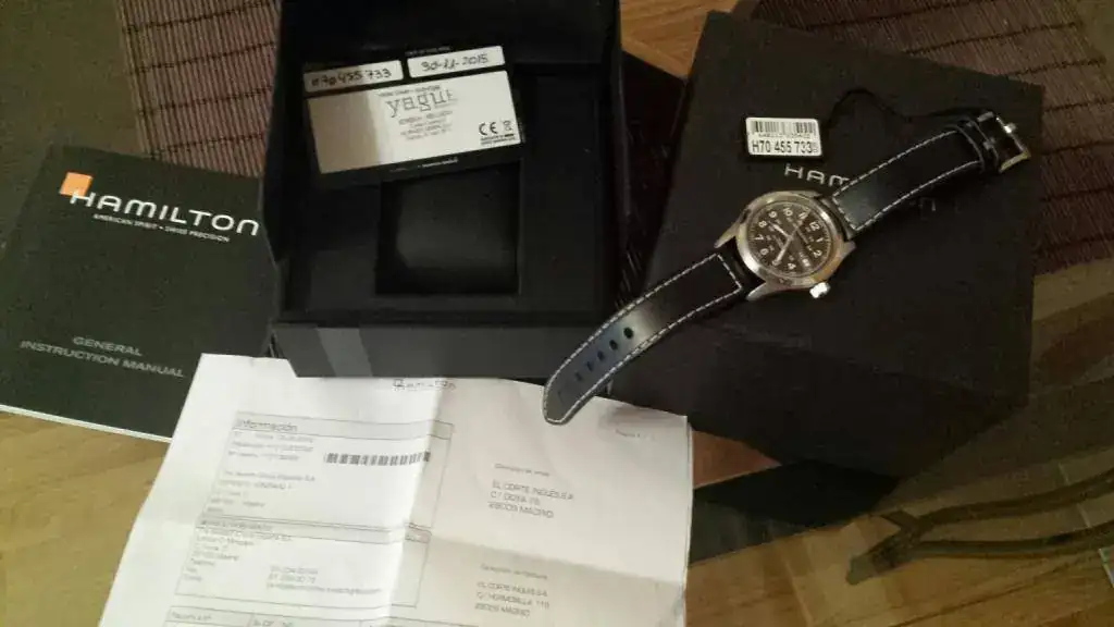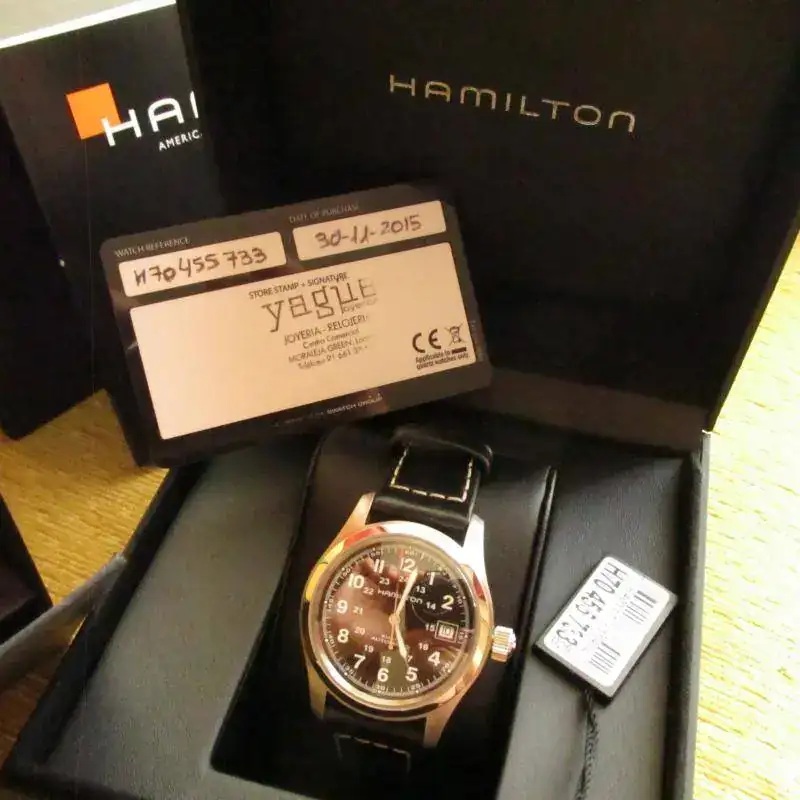 Pongo a la venta este Hamilton Khaki Field de 38 mm mas corona, en estado de reestreno, aunque al reloj le quedan 14 meses de garantía Ofcial fué llevado al Sat por un fallo e incluye la documentación que incluye 24 meses de garantía desde este mes.