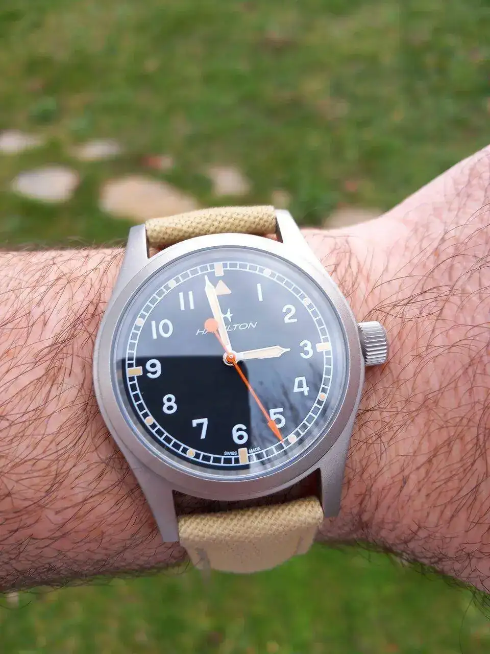 La verdad que siempre me han encantado los Hamilton Khaki field Mechanical de 38mm pero nunca daba el paso, quizás por su largo L2L, por su ausencia de AR, por sus correas natos, a las cuales no logro hacerme...y quizás veía los diales demasiado copados de dígitos...
