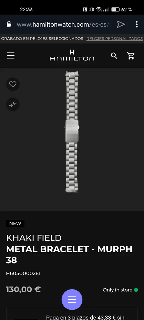 Si encajaría; supongo que si lo podrás conseguir en un CO de Hamilton, aunque como el lanzamiento es muy reciente posiblemente te cueste un tiempo de espera; y estoy convencido que el precio será elevado, normalmente un armis oficial comprado a la marca suele ser caro, de ahí que lo preferible es comprar el reloj inicialmente con el armis, pero como no era posible de ahí venia la demanda popular de una versión con armis.Yo tengo el de 38 con la correa de piel, y me interesaría saber si este tiene el mismo tamaño de caja y dimensiones de las asas para saber si al mio se le pudiera, como opción, acoplar este brazalete. Luego otra cosa sería saber si se puede conseguir el brazalete suelto s través de Hamilton, y a qué precio...