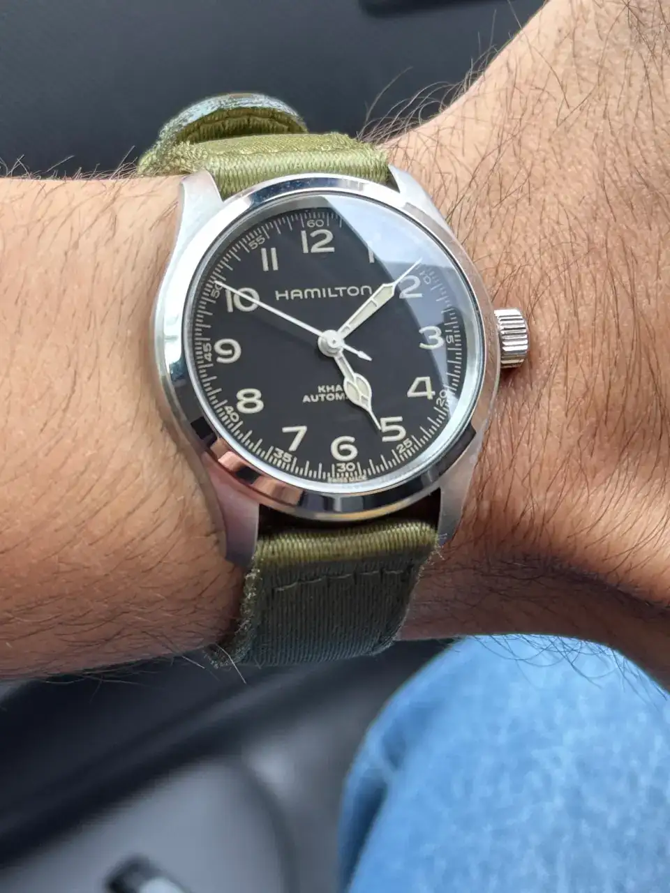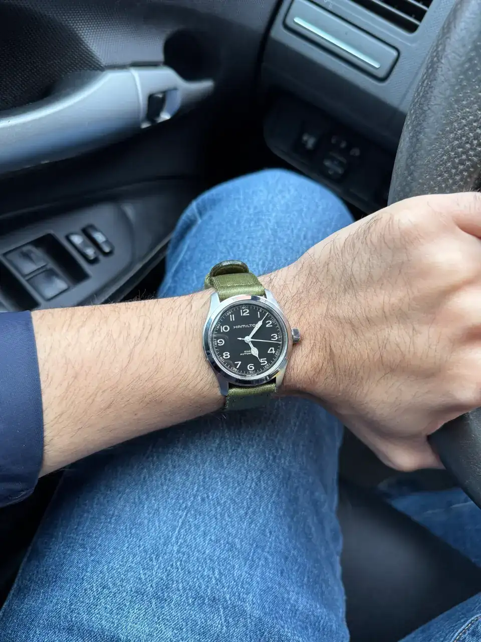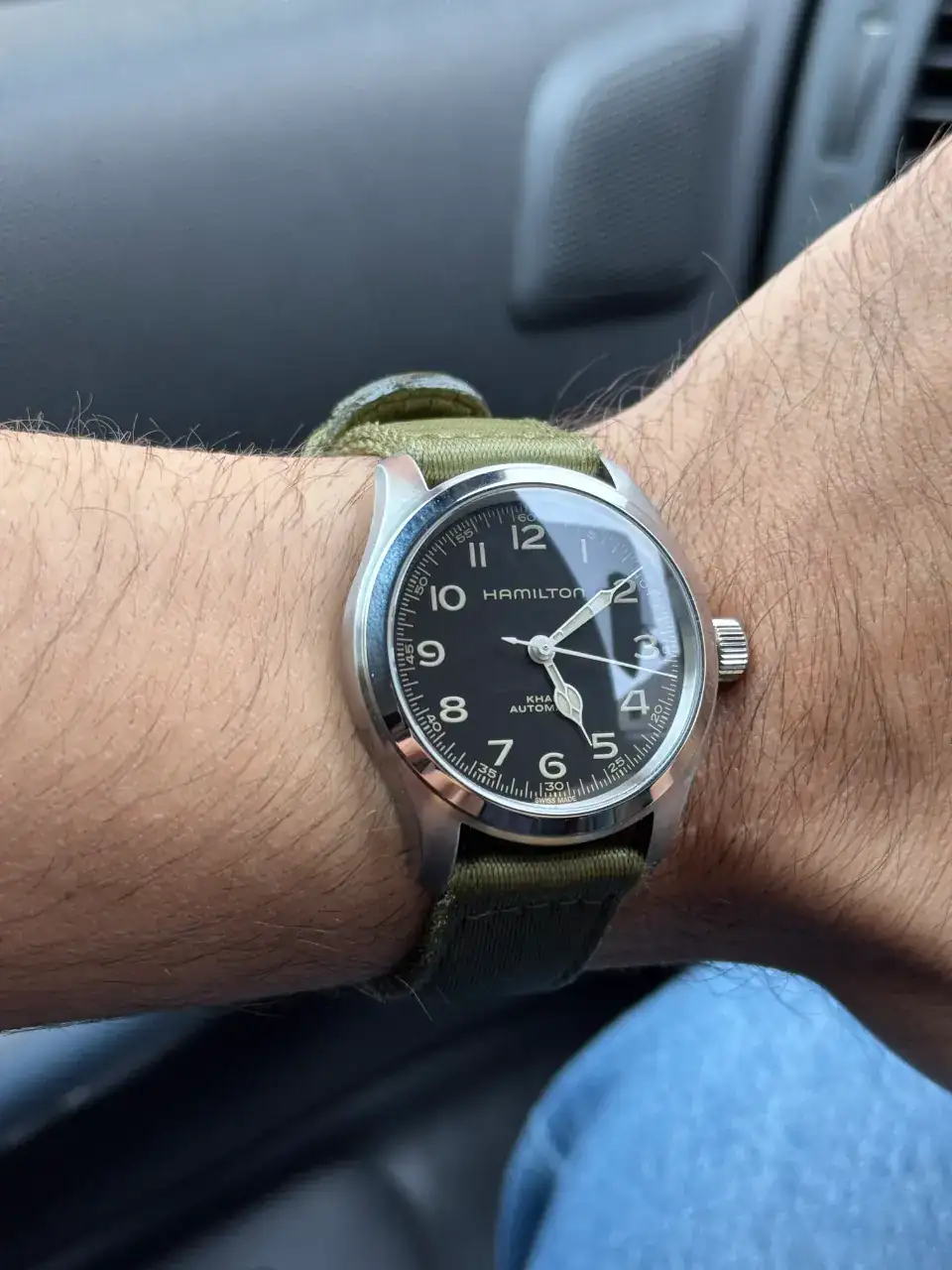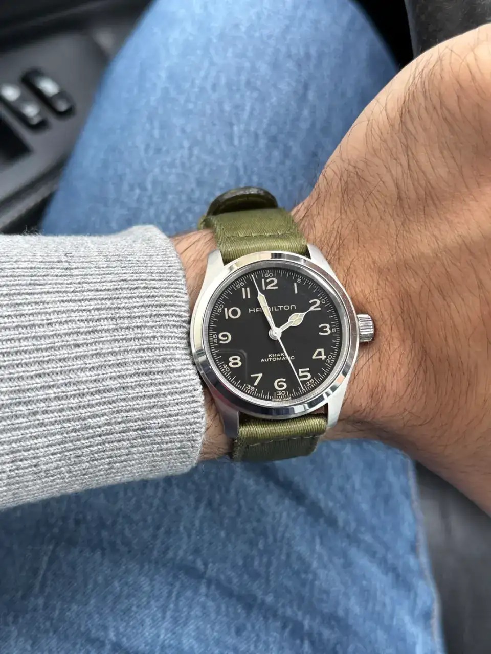 Mira que he usado yo también el khaki de 42, pero he dejado de usarlo poco a poco por el tamaño. Ahora preferiría tener el de 38😅.En mi opinión es un tipo de reloj que creo que es ideal para el día a día, y con un simple cambio de correa le da un aire completamente diferente. Yo tengo el clásico Khaki Field Auto de 42mm y puedo estar semanas sin quitármelo, cambiando solo la correa.