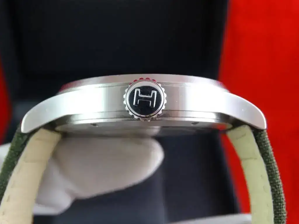 Hoy sacamos a la venta uno de los modelos más conocidos de Hamilton, el Khaki, en este caso su versión Officer, índices árabes, segundero pequeño, esfera beige y una correa que aunque no es Hamilton, es de alta calidad y con un tono verde que le sienta espectacular. Es un reloj de 44mm que hará las delicias de cualquier muñeca, elegante y deportivo, una pieza estupenda que no defrauda.