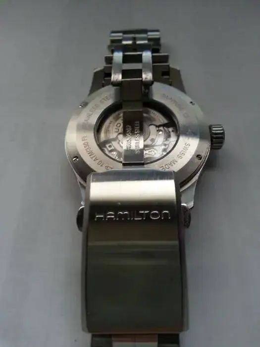 El reloj viene con el armis original de Hamilton y solo se pueden apreciar unas ligeras marcas de uso en el cierre, como podéis comprobar en las siguientes imágenes.