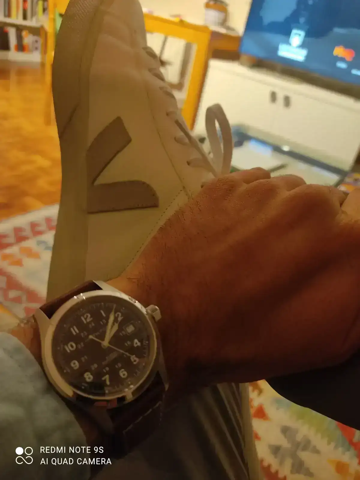 Ahora bien, el tratamiento antirreflejo en muchos Khaki Field actuales es o inexistente o muy limitado (normalmente solo interno) y aquí Hamilton juega un poco a la ambigüedad romántica y, a mi entender, se equivoca. Por un lado, se sugiere fidelidad histórica, sí, pero por otro hay ahí un ahorro de coste disimulado. ¡Mister Hamilton, que aquí no nos chupamos el dedo! ¿Qué cuál es el resultado práctico de todo esto? Pues que, según el ángulo de luz que le esté dando a tu pieza, cuando vayas a mirar la hora no solo confirmas el minuto… también puedes repasar el estado general de tu cara y confirmar también que persisten esas ojeras de un trasnoche indisimulable. No es drama, pero, a la vista está, tampoco invisible. Y en un reloj cuya religión ha sido la legibilidad, uno podría pedir un poquito más de honestidad y de fe aplicada. Tenía que decirse y se dijo.