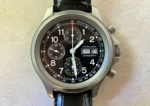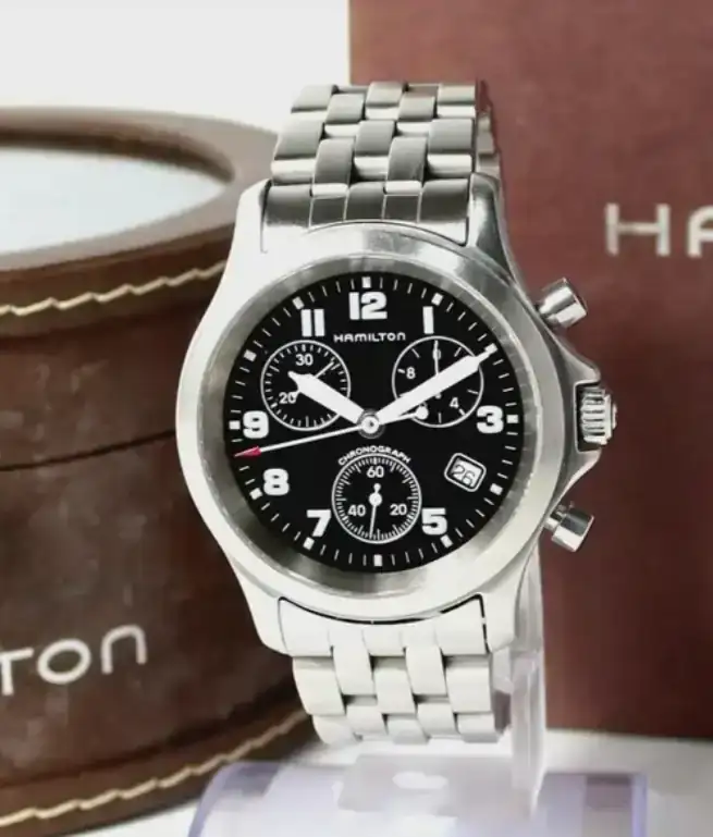 Con el paso de los años y la evolución tecnológica, Hamilton (ya en su etapa de integración industrial y posterior traslado de producción a Suiza) empieza a reinterpretar ese lenguaje de reloj de campo para uso civil. Aquí es donde nace formalmente la familia Khaki como línea identificable, no como reloj de contrato, sino como colección inspirada en ese legado instrumental. Y es importante entender que no es copia literal de un único modelo histórico, sino síntesis de rasgos funcionales repetidos a lo largo de varias generaciones de relojes de servicio. Señores, hay que hacer caja, y no me refiero a la granallada...