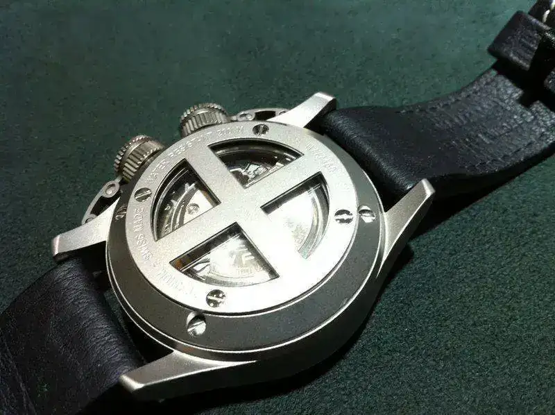 - Calibre automatico Eta Valjoux 7750. Fecha a las 9,30. Crono Split 12 horas controlado por corona a las 4,00 horas.