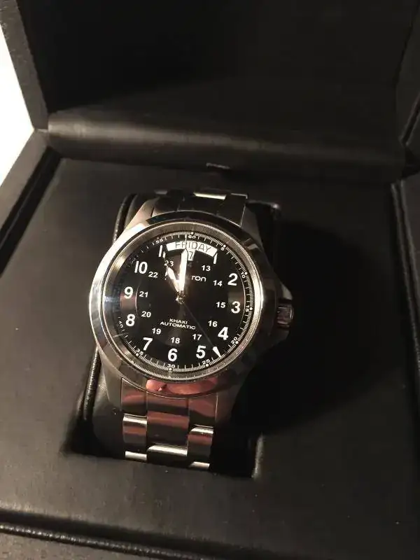Esta noche cuelgo para la venta/cambio este fiable y conocido Hamilton. Para cambio lo valoro en 350€ y busco Seiko (no solar ni clásico), Citizen (no automáticos pero sí Eco-Drive), KHS, Obris Morgan y Orient, fundamentalmente, M-Force y Ray, ajustando diferencia en efectivo si es el caso. Seguidamente, la ficha de rigor. Cualquier duda o propuesta será atendida gustosamente por privado. Gracias por leer y al foro por el espacio.