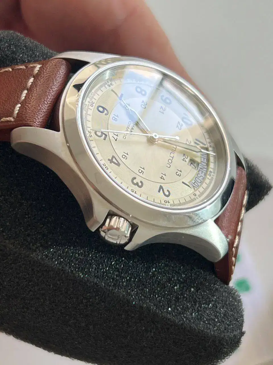 Por motivos ajenos a los gustos relojeros pongo en venta este reloj y en los sucesivos días iré desprendiendome de otros; saco a venta este reloj Hamilton precioso modelo y poco visto con Esfera Champagne automático con el calibre H40 de hamilton con 80 h de reserva de marcha, con su estuche y su tarjeta de garantía aunque ya caducada
