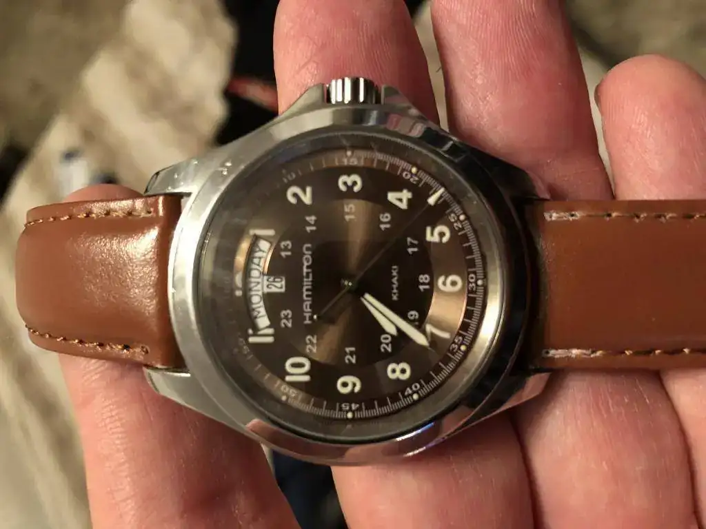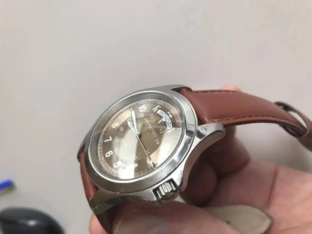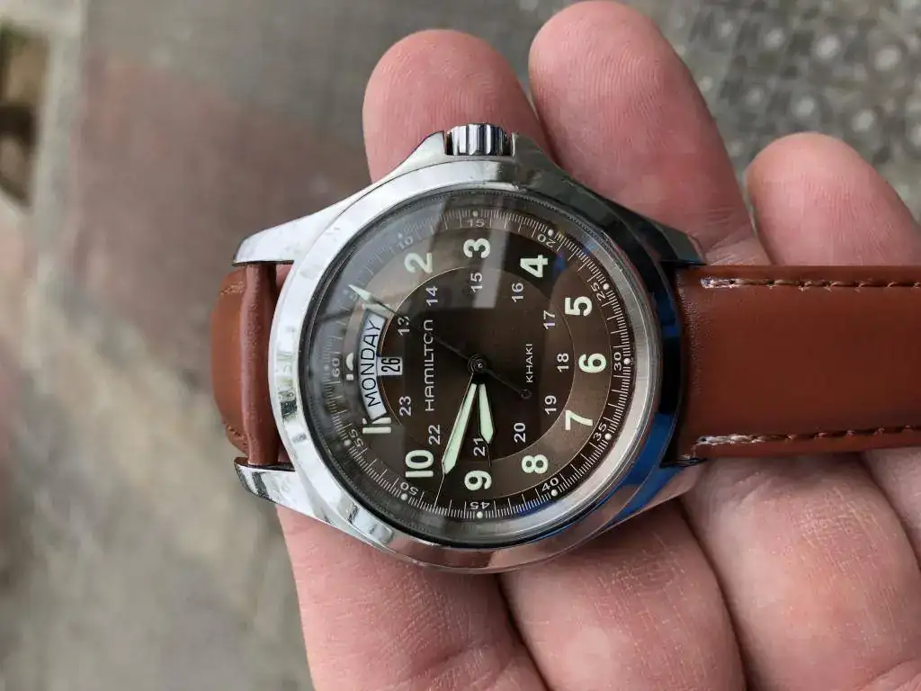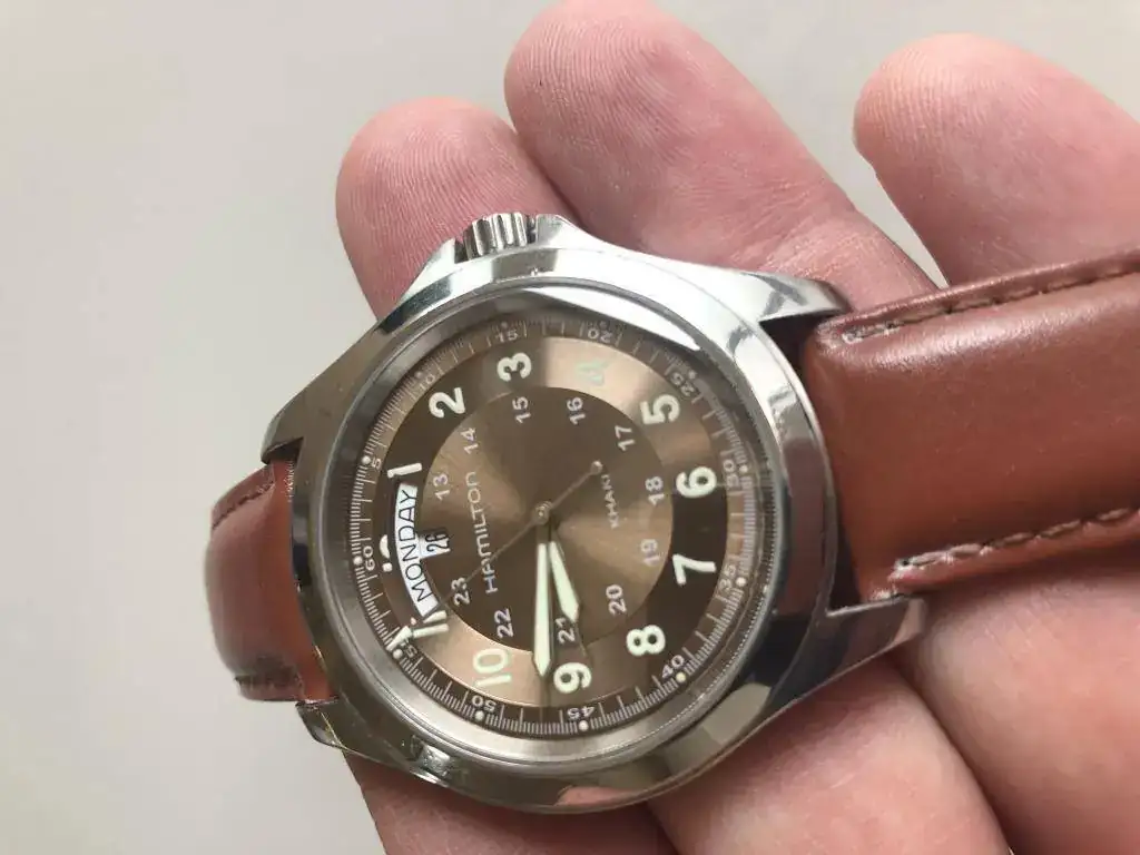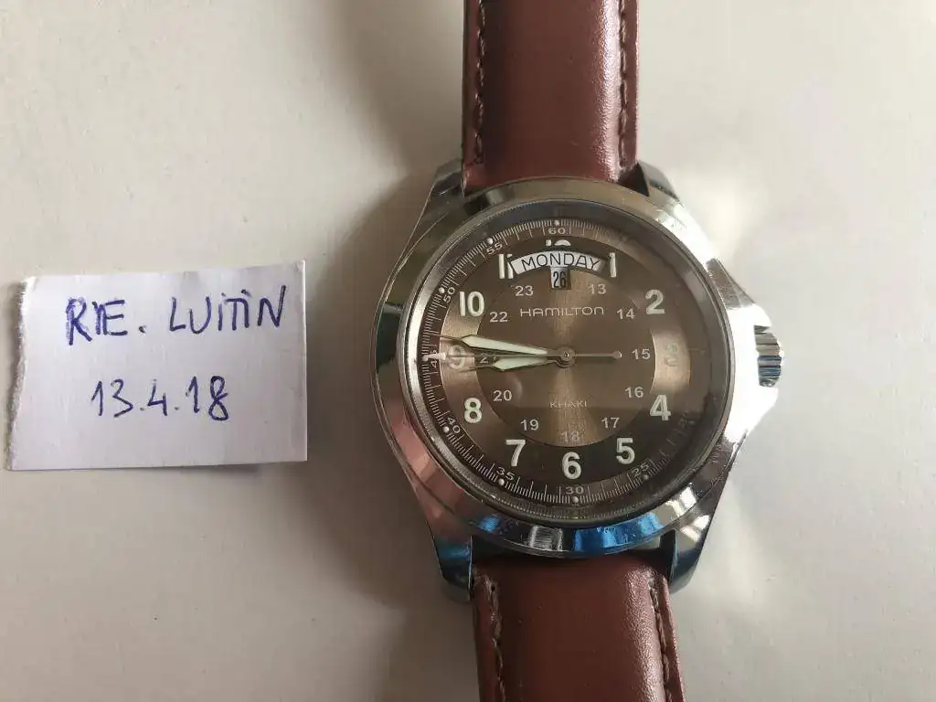 Saco a la venta este Hamilton con marcas de uso en la caja, (ver fotos) tiene el cristal de zafiro impoluto, asi como la esfera en un precioso color marron y el funcionamiento perfectos, lumen en perfecto estado; le pongo un rápido precio de salida de 125€ euros,