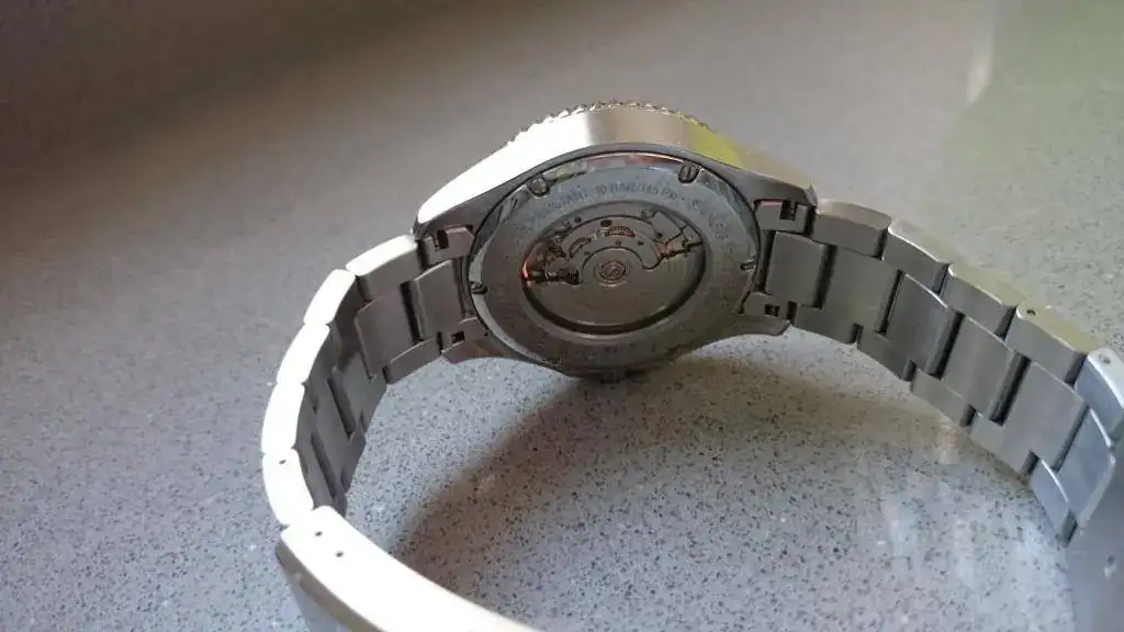 Sobre el estado de la pieza, pues podeis comprobarlo en las fotos. Lo he tratado con sumo cuidado. Tiene los inevitables pelos en el cierre y alguno en el armis pero nada reseñable. El cristal de la esfera y la trasera están impolutos.
