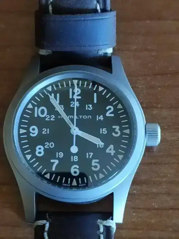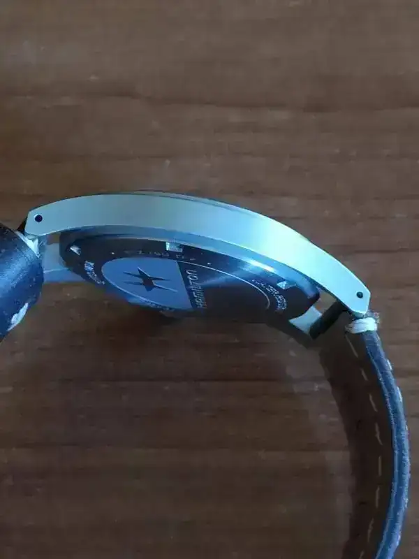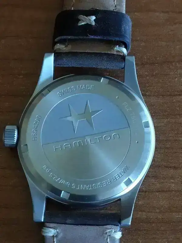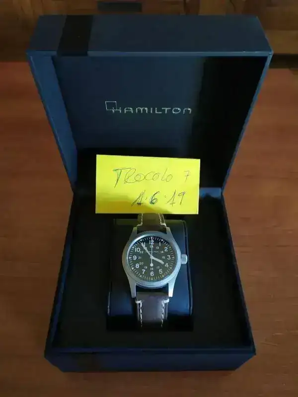 Buenas tardes. Vendo mi Hamilton nuevo, su estado es inmaculado. Solo le cambié su correa por la de piel que lleva puesta y que le sienta de película y anduve por casa con él y a su caja. Comprado en tienda física hace menos de un mes. Completo. Correa de regalo.