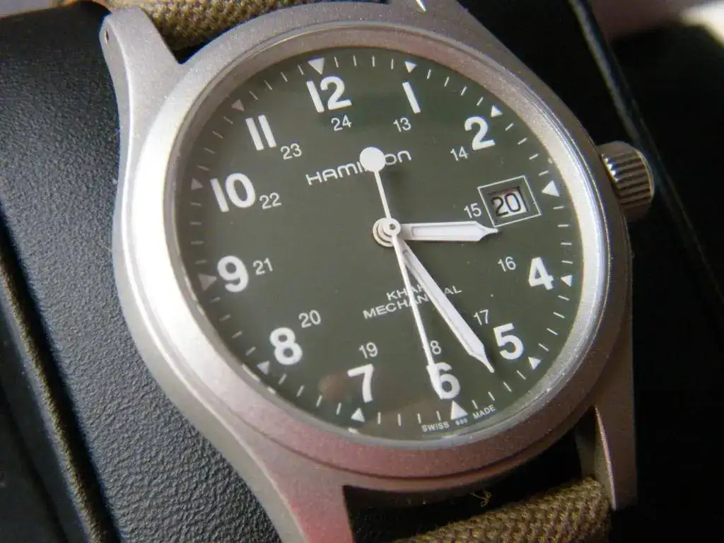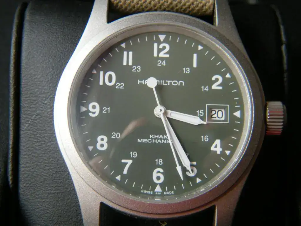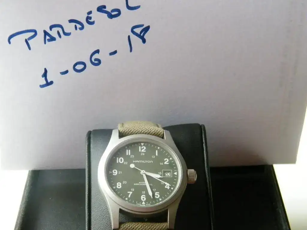 Vendo este Hamilton militar de carga manual, procedente de un cambio su estado es verdaderamente impecable. Se trata de la referencia H694190 esfera militar de color verde. No tengo la caja exterior de cartón ni papeles.