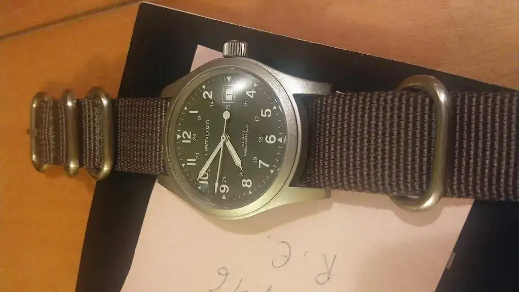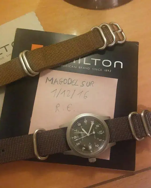Hola compañeros vendo el hamilton khaki mechanical 38 mm, el reloj le dura la cuerda exactamente 12 horas, no se que le pasará, no lo he mirado, tiene un par de pelillos en el cristal se ven depende del angulo, no lo he podido reflejar en las fotos, el precio que le pongo es de 145 euros envio incluido, podria aceptar un seiko 5 como parte de pago, pongo la ficha de rigor: