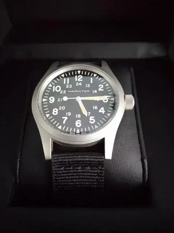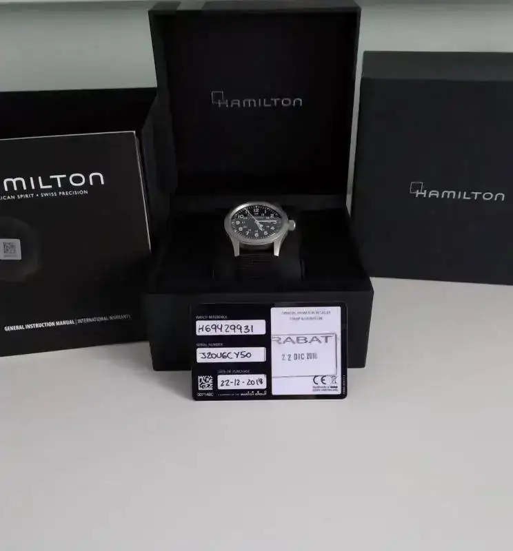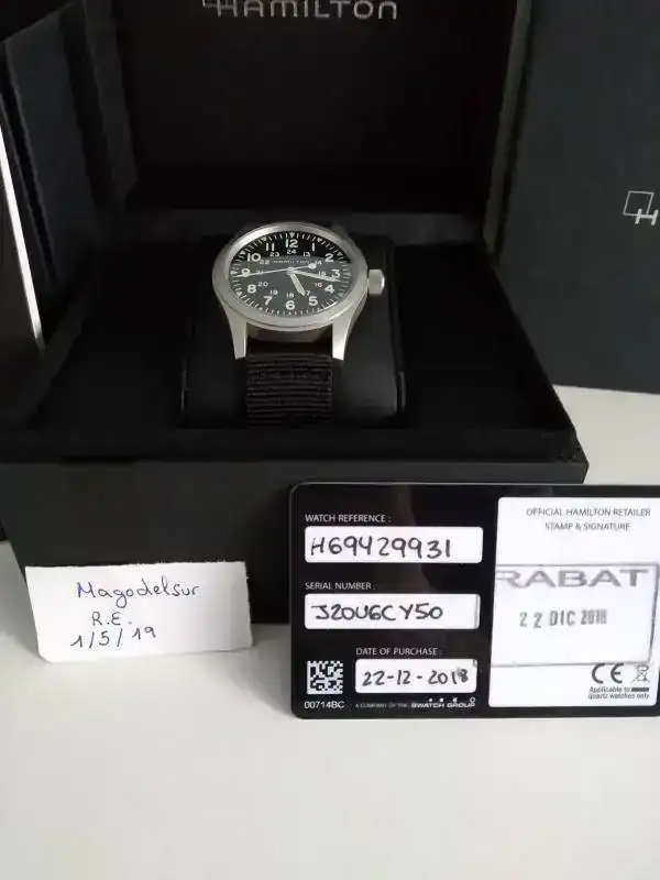 Buenas compañeros, saco a la venta con poquísimo uso el Hamilton mechanical, el último modelo, se vende con toda la dotación, caja exterior, caja interior y documentación con garantía de un año y siete meses por delante, el reloj está impoluto ni un solo roce, va con nato negra.
