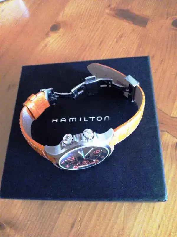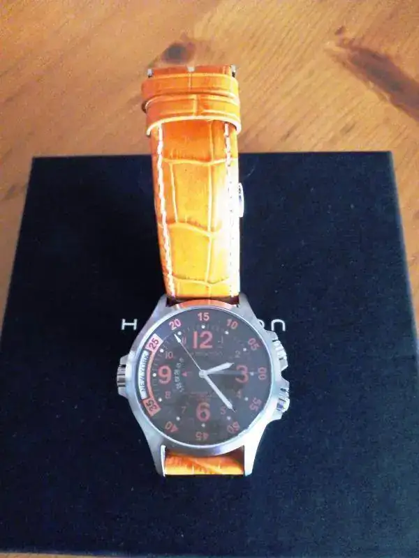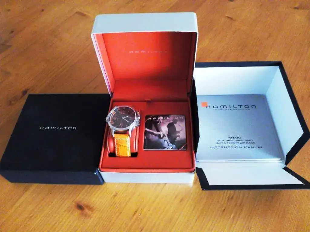 Marca: Hamilton Modelo: khaki Navy GMT Air Race Año de compra (nuevo): 2015 Año de compra por quien lo vende (si es distinto): Estado: (nuevo/usado) Usado Movimiento: automatico Caja (medidas): 42m/m sin coronas Cristal: zafiro Esfera: 42m/m sin coronas Brazalete😛iel con cierre ¿Estuche? s/n SI Documentación y tipo de la misma Si ¿Garantía original SELLADA? s/n no ¿Garantía vigente? s/n no Precio: (o cambio) 420 € ¿Envío incluido? s/n si Forma de envío Agencia sin seguro.