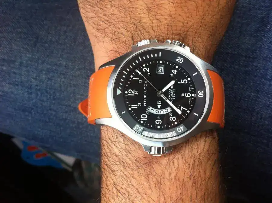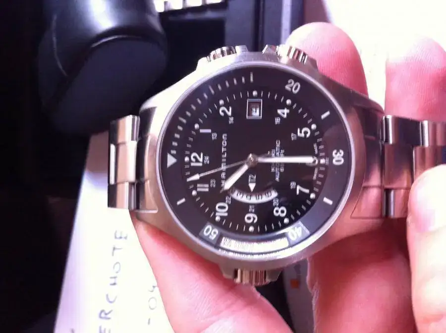 Saco a la venta este reloj por motivos de re-estructuración de mi colección, un Hamilton Khaki Navy GMT con esfera negra.