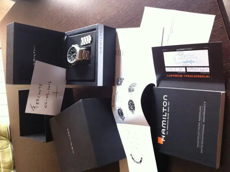 Documentación: El reloj se encuentra complero de cajas y demás. Tiene la de cartón exterior, la interior de madera y aluminio forrada en cuero, instrucciones y garantía.