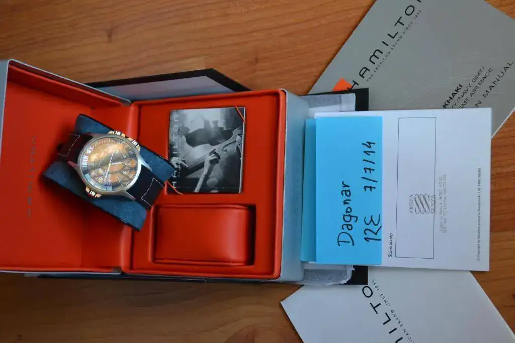 Como podréis ver en las fotos tiene caja (de las chulas antiguas de aluminio con interior naranja), papeles y garantía sellada en C.O. nacional SIN FECHA.