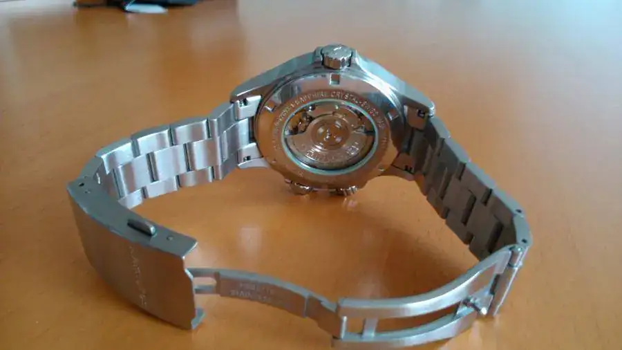 El estado del reloj es muy bueno; simples pelillos. A destacar; una marca entorno al minuto 8, que se puede apreciar en la cuarta foto, muy pequeña.