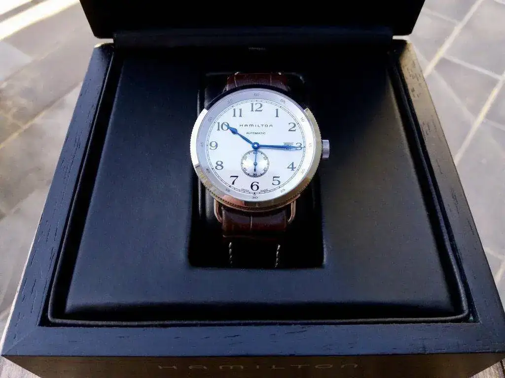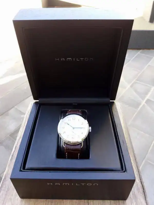 Pongo a la venta mi Hamilton Khaki Navy Pioneer. Un reloj inspirado en los antiguos cronómetros de marina de Hamilton. El estado del reloj es excelente. Tras revisarlo, no he podido apreciar ninguna marca de uso. Lo entrego con dos correas; la correa Hirsch que aparece en las fotos, a la que le queda todavía mucho uso, y la correa original del reloj, casi nueva. El reloj se entrega con toda su dotación: Caja exterior en cartón duro, caja interior en madera y manual de instrucciones.