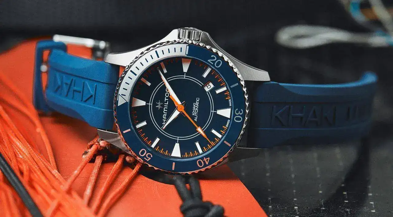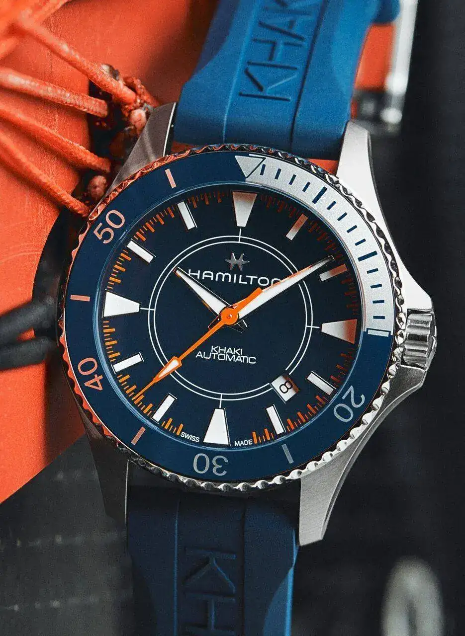 La caja, en acero inoxidable, mide 40 mm x 12,9 mm. Bisel de buceo azul y plata. Tiene un cristal de zafiro con recubrimiento AR, un fondo de caja grabado que celebra la asociación entre Hamilton y Syroco, y es resistente al agua hasta 100 metros.