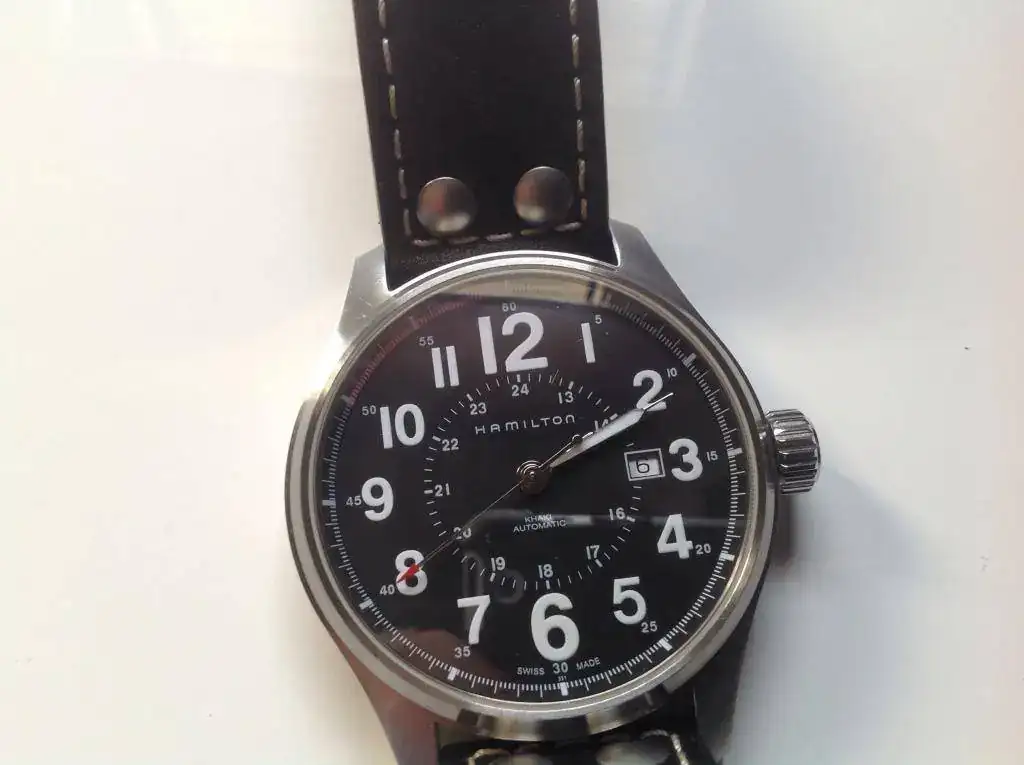 Con el fin de hacer caja para las últimas piezas compradas, saco a la venta este precioso hamilton khaki officer con 4 meses. El estado del reloj en mi opinión es muy bueno con muy poco uso. Resaltar un pequeño pelo en la caja a la altura de las 11 que he intentado sacar en las fotos. Si queréis que os mande más fotos solo tenéis que pedirlas. Ruego no me ofrezcáis cambios por favor.
