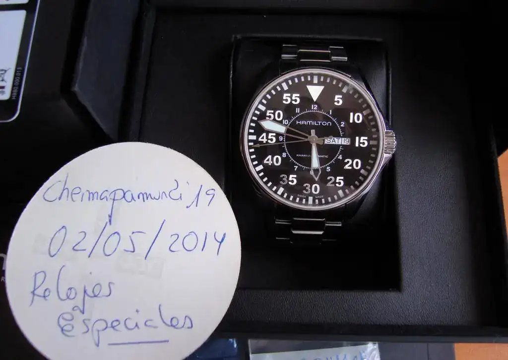 HOLA A TODOS, POR FALTA DE USO PONGO A LA VENTA ESTE MAGNÍFICO HAMILTON KHAKI PILOT 46 MM. EL RELOJ SE ENCUENTRA EN UN ESTADO PERFECTO, VAMOS QUE PODRIA PASAR POR NUEVO YA QUE DESDE QUE SE LO COMPRE A UN BUEN PATROCINADOR DEL FORO SI ME LO HE PUESTO CINCO VECES SON MUCHAS (TIENE TODAVIA LA PEGATINA TRASERA, DELANTERA Y DE PROTECCION DEL ARMIS). EL RELOJ COMO SE PUEDE VER EN LAS FOTOGRAFIAS ADJUNTAS NO TIENE NADA DE NADA, NI MICROPELILLOS NI NADANI EN ARMIS NI CIERRE DEL MISMO NI CAJA, VAMOS QUE ESTA NUEVO. ESTA EN GARANTIA HASTA JULIO DEL 2015.