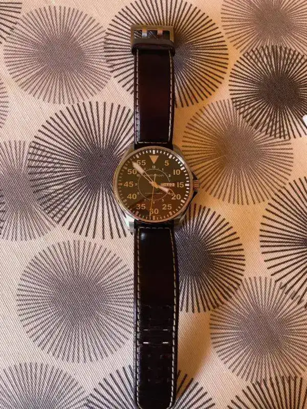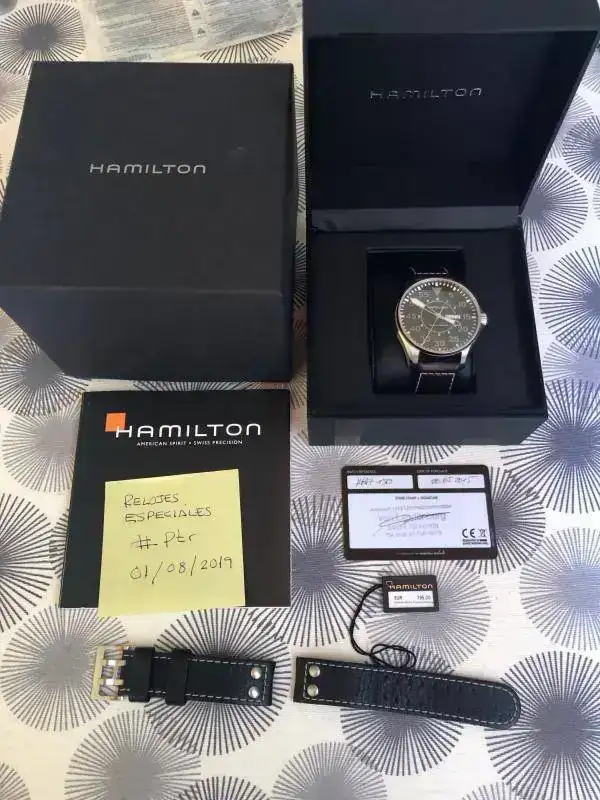 Buenas tardes, después de varios movimientos en mi caja he decidido poner a le venta mi Hamilton Pilot auto, en un estado tanto estético como mecánico, muy, muy bueno, la caja está sin marcas y su exactitud es de -3 Seg./día. Caja sin marcas reseñables y muy cuidado, los que me conocéis sabéis como trato a todos mis relojes y a mis bonus me remito.
