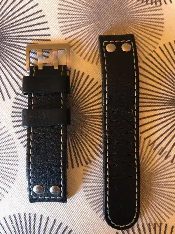 El reloj es de 2015.Su correa de cuero, está con mucha vida con delante con las marcas típicas, regalo otra correa original de la marca en cuero y color negro valorada en mas de 50€ y con menos uso aun.