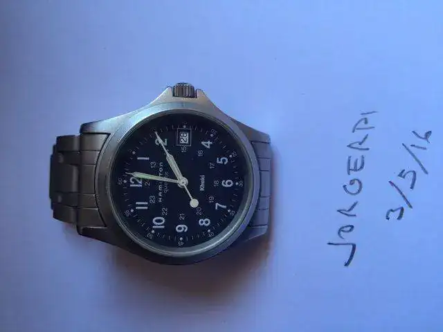 Tiene algunas señales de uso: un pequeño arañazo en la esfera (facilmente reparable) y que creo que sale bien en las fotos y las marcas que se ven en el armis.