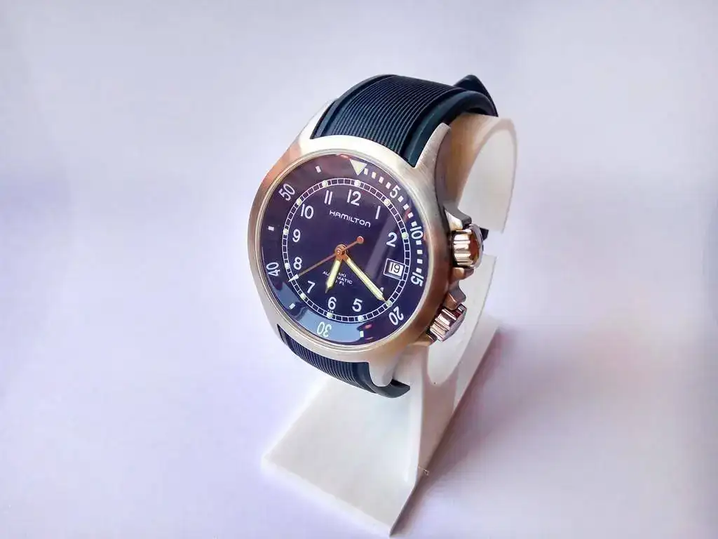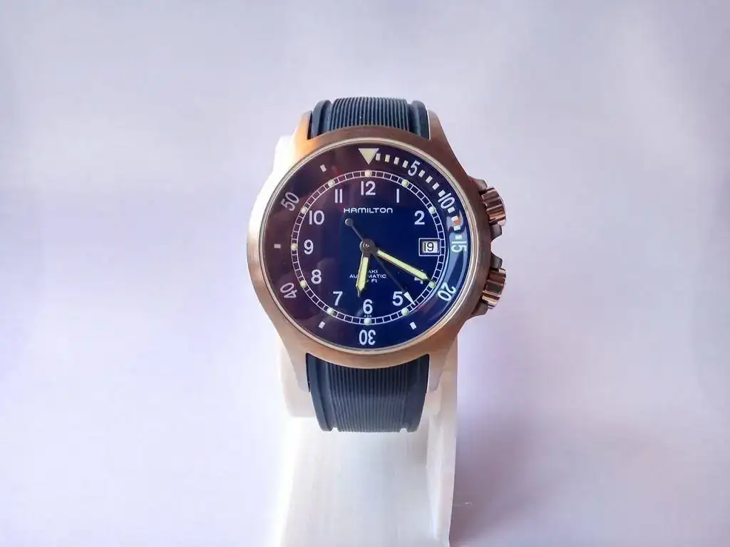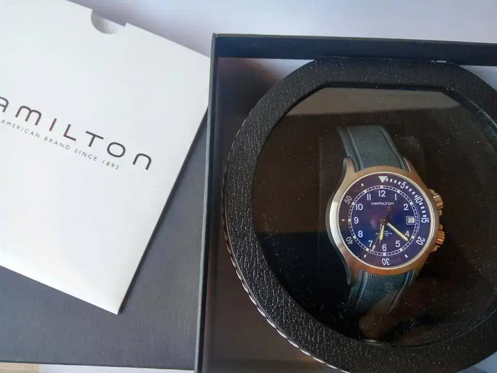 saco a la venta este precioso y poco visto Hamilton khaky Navy, un diver de doble corona con maquinaria Eta 2824-2 que funciona a pelo, zafiro delante y detrás y bisel interior que se controla con la corona superior. Incluye garantía de tienda nacional sellada, rellenada pero no fechada.