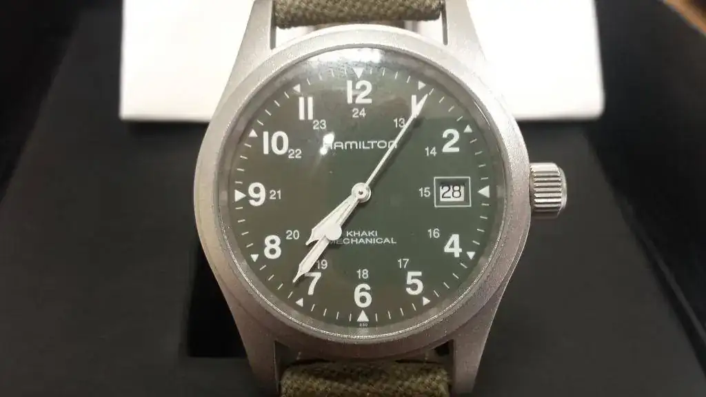 vendo este precioso y buscado Hamilton Mechanical verde militar. El clásico, buscado y característico reloj de Hamilton. El estado es impecable y está en garantía. No tiene marcas en la caja, tan solo en la tapa, ya que tuvo que repararse en garantía por un problema de carga. Es lo que tienen las cosas nuevas. Por lo demás y una vez subsanado está impecable. Nada de nada, reestreno. ideal para regalarse en Navidades. No me interesan cambios pero podemos hablar algo del precio.