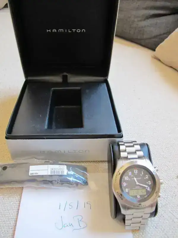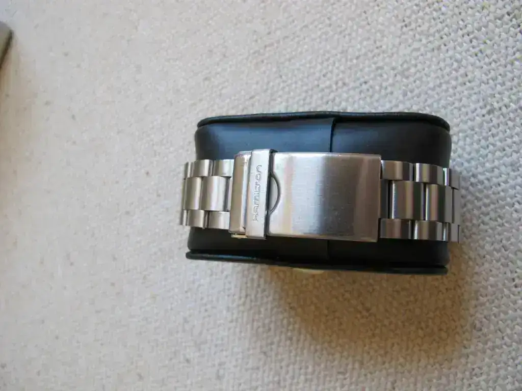 - Brazalete de acero, original Hamilton para este modelo con cierre de seguridad (ajustado a + 20 cm con todos los eslabones montados)
