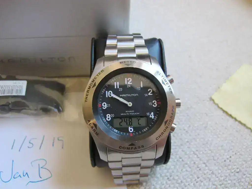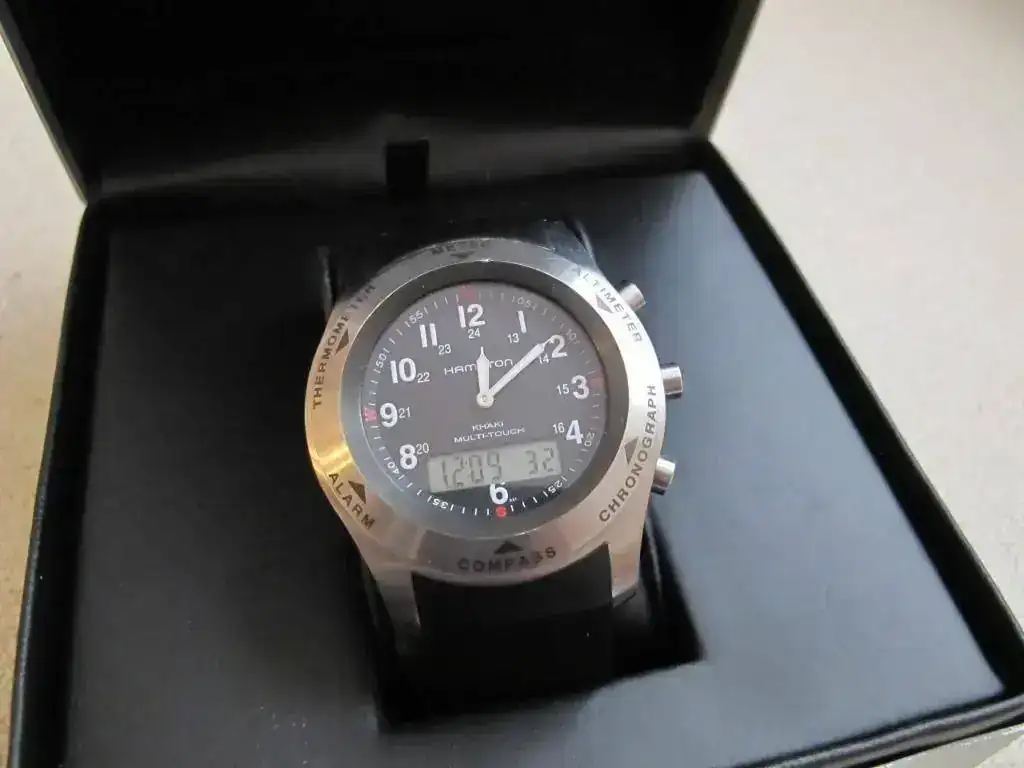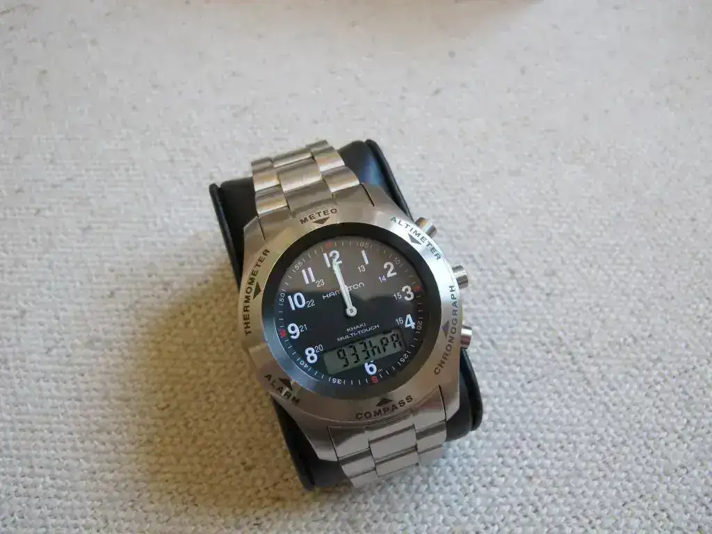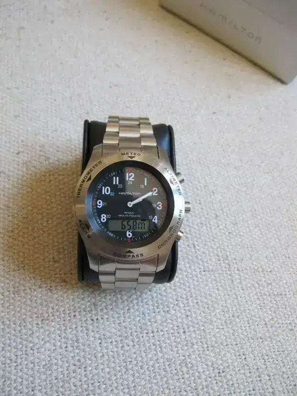 Vendo un reloj Hamilton Multi Touch con caucho más armis originales. Comprado en el foro hace poco más de un mes, siempre me gustó el Tissot T-Touch (tiene el mismo movimiento) y me apetecía mucho como sustituto de calidad de mi Suunto digital pero no me ha convencido. Este era el anuncio del compañero: