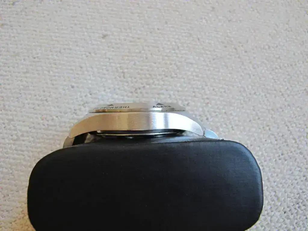 Dial negro, con ventana digital con indicación de hora o fecha (y sus otras funciones, altímetro, barómetro, brújula, cronómetro, temperatura y alarma). En el bisel también se indican estas funciones. Cristal de zafiro táctil.