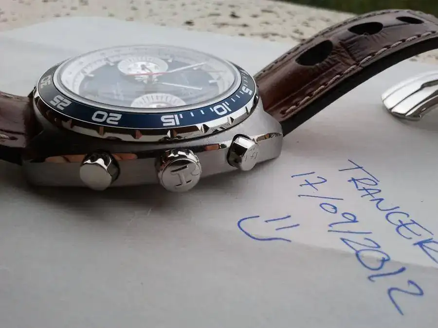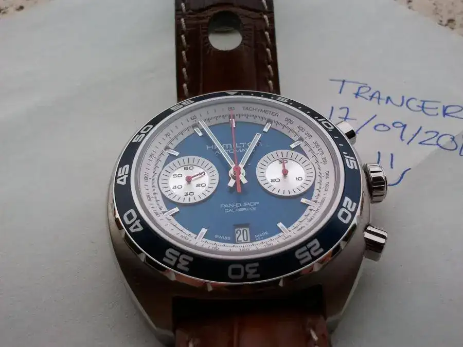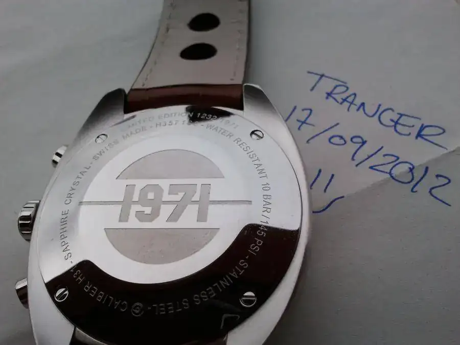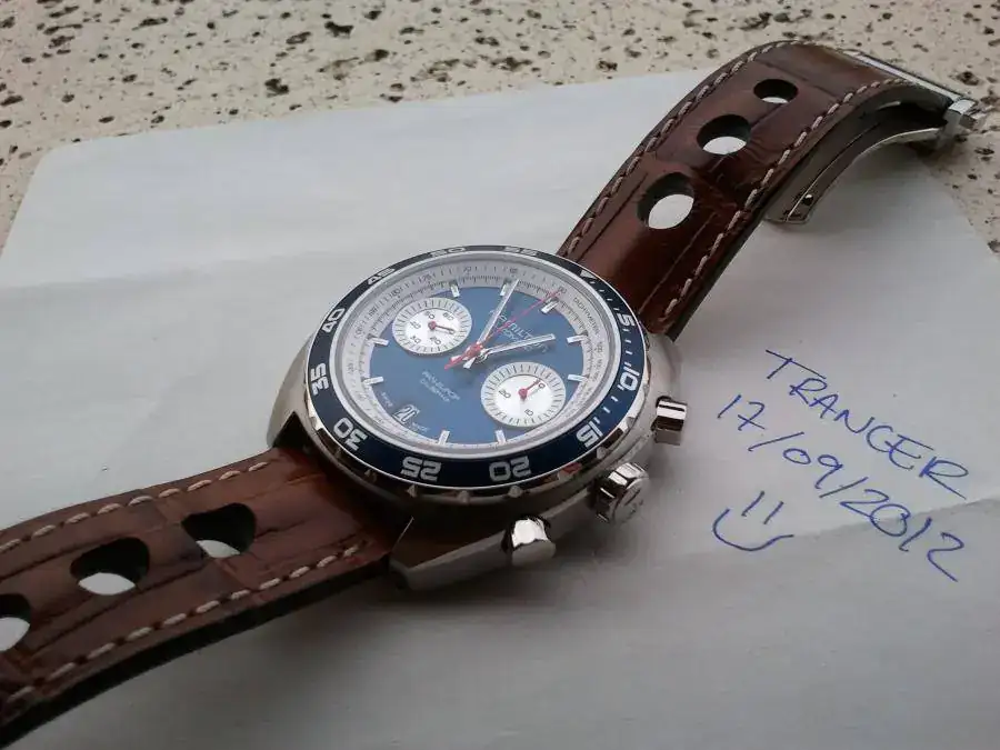 Por añadir alguna cosilla pues el calibre es el H-31, alguna variante del Eta 7750 ó 7753. Tiene una bonita correa de piel.