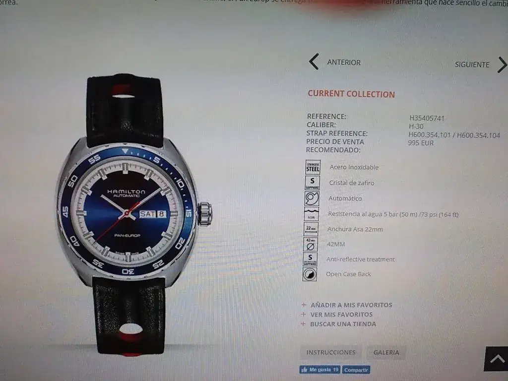 Hola a todos, pongo a la venta el más que conocido Hamilton Pan europ solo hora en azul: